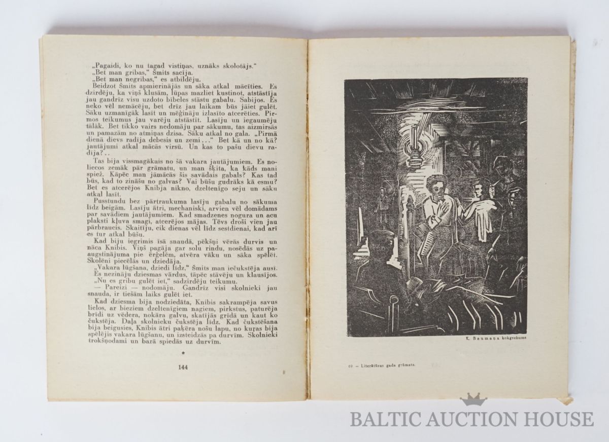 Literatūras gada grāmata 1946. gadam. Vāku zīmējis K. Sūniņš. Noplīsis vāks.
