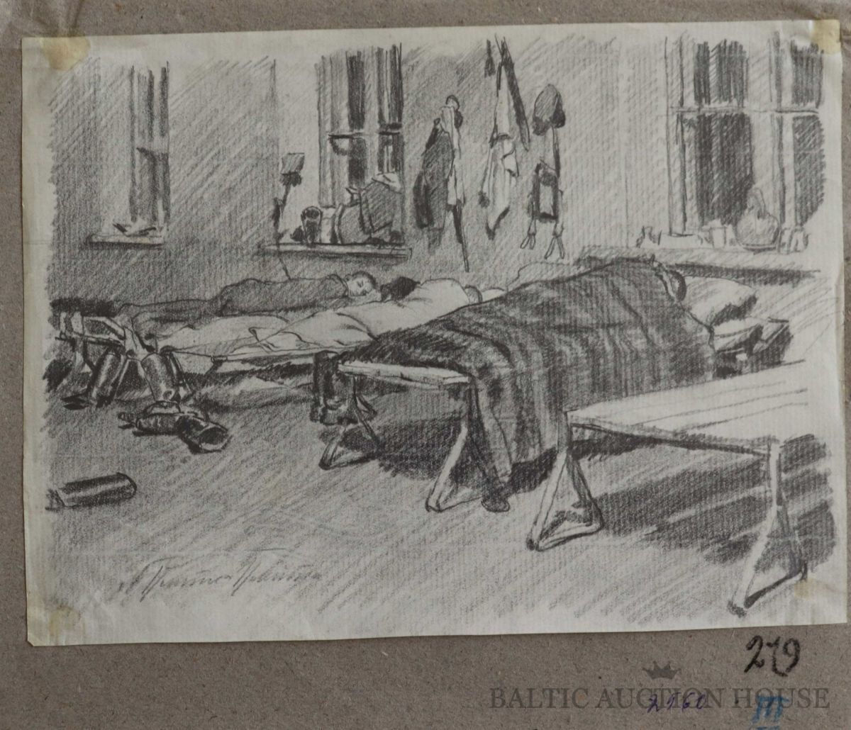 Alfrēds Plīte-Pleita (1888-1921) ''Kazarmās''. P.zīm. 17x22 cm.