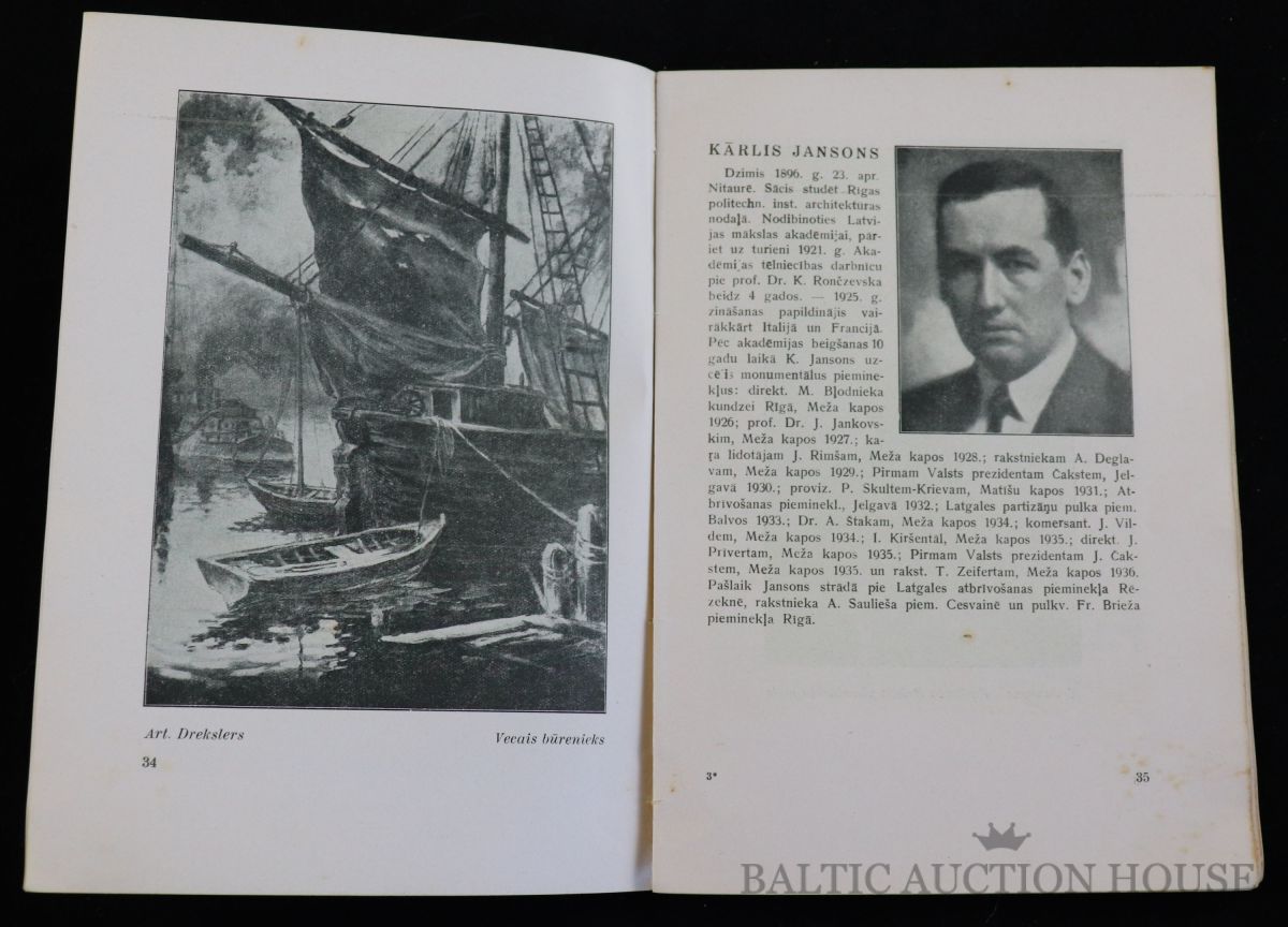 "Latvju mākslinieku biedrības darbu klāsts 1936". Izd. 1936.g., 90 lpp.