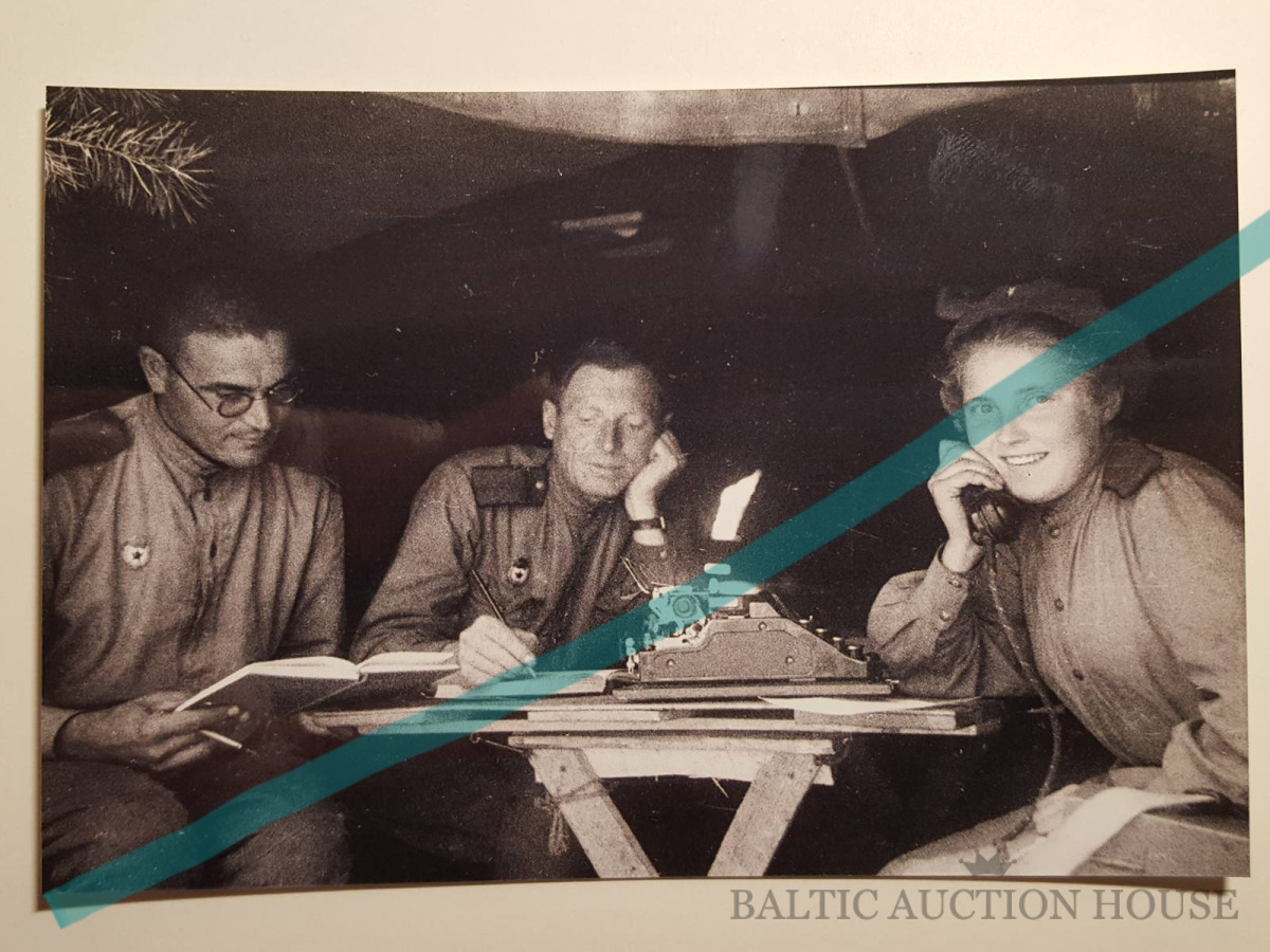 V. Gaiļa foto, 10×15 cm.Latviešu sarkanie strēlnieki 1944. gada ziemā Kurzemē.