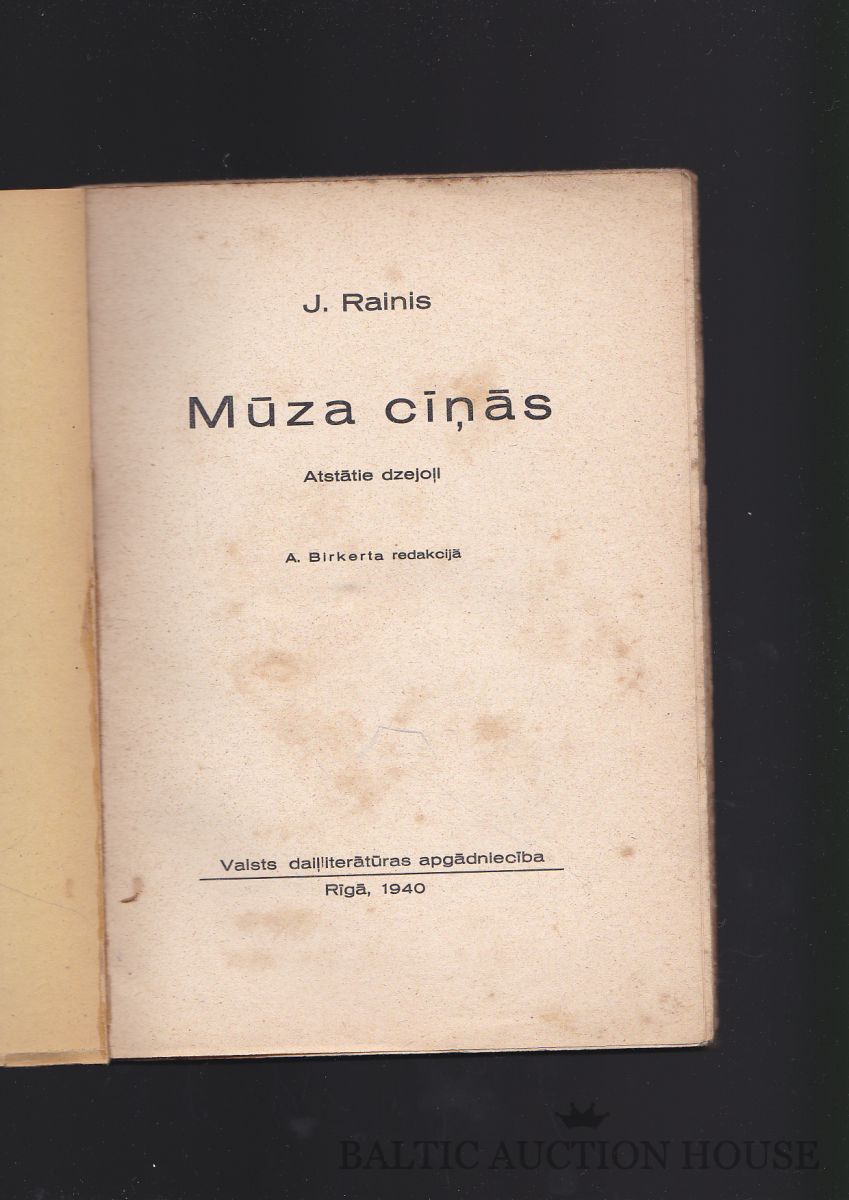 Rainis MŪZA CĪŅĀS , 1940. g., Literatūrzinātnieka Antona Birkerta redakcijā tapusi.
