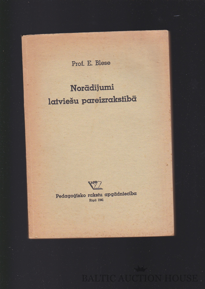 Prof. Ernests Blese NORĀDĪJUMI LATVIEŠU PAREIZRAKSTĪBĀ, 1941. g. , (ļoti labi saglabājies ekemplārs)