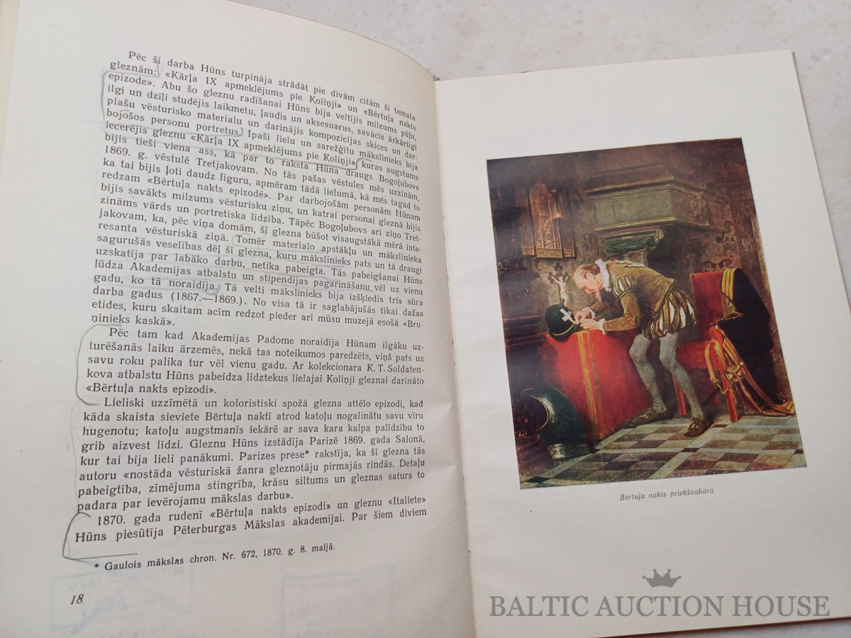 A. Lapiņš, A. Eglīts KĀRLIS HŪNS, 1953. g. ar reprodukciju attēliem, tekstā veikti pasvītrojumi ar zīmuli.
