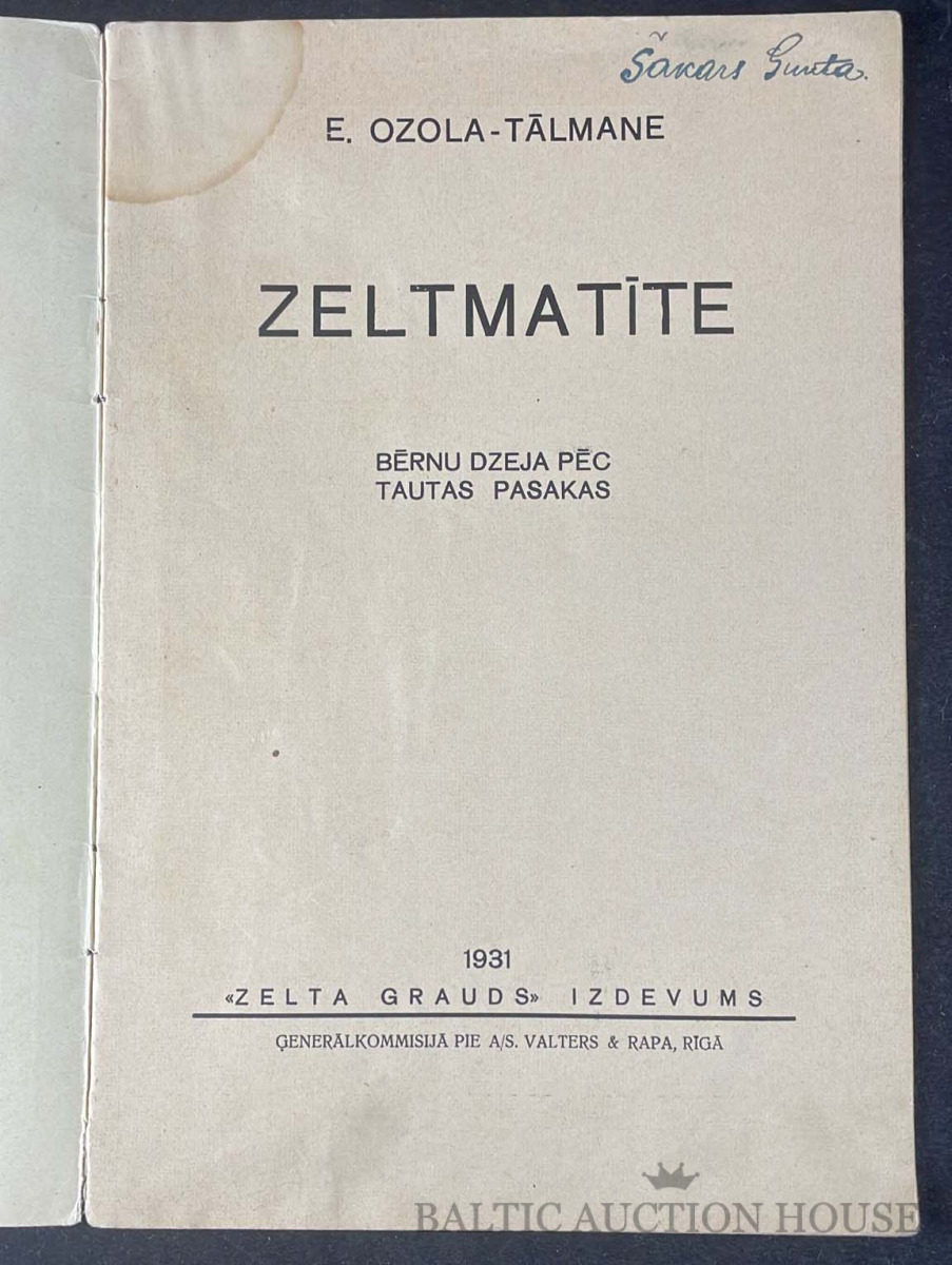 Grāmata E. Ozola-Tālmane ZELTMATĪTE 1938.g.