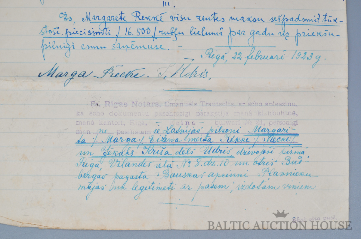 Rentes līgums. Latvija 1923 gads. 22x36 cm.