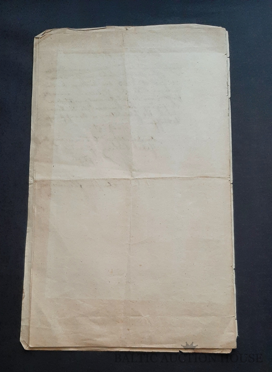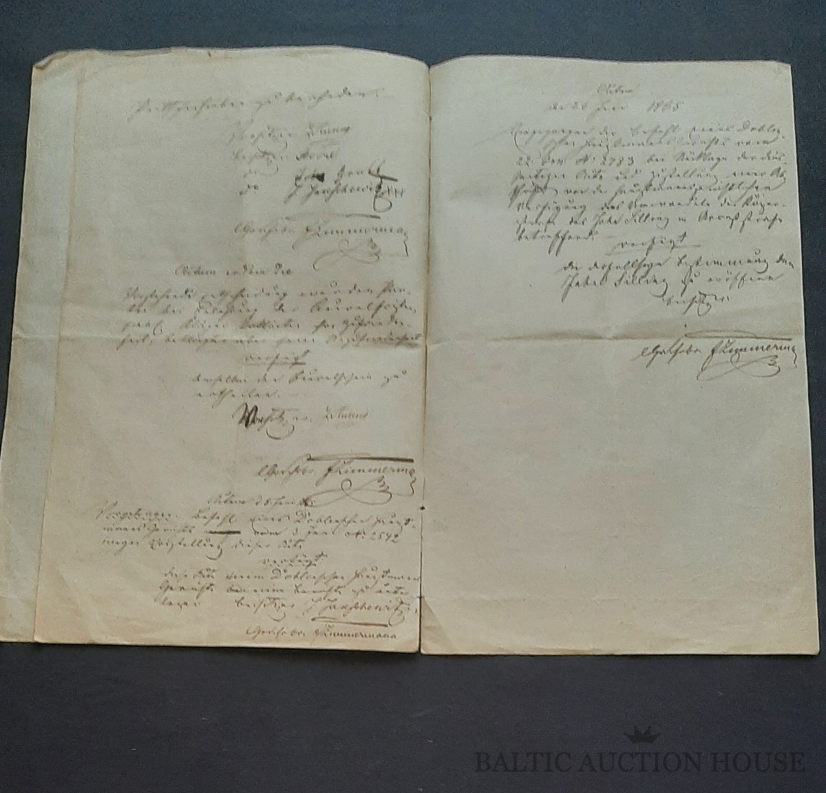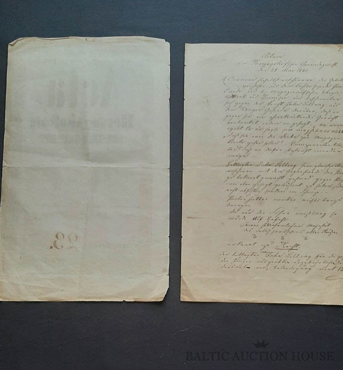 Акт муниципального суда,1865 год. Текст на немецком языке,две строчки на старорусском. Размер: 23,5 см х 38 см
