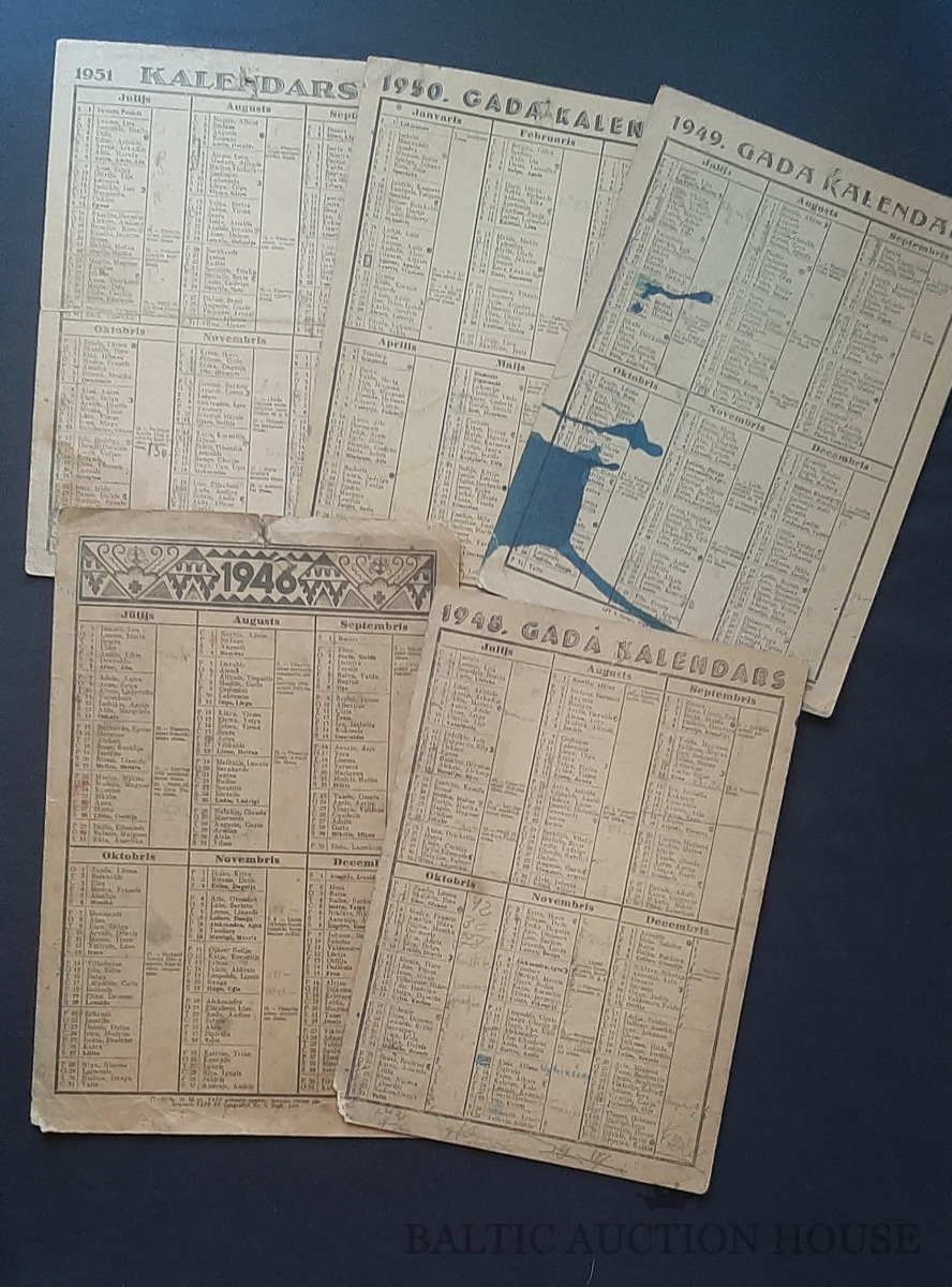 Gada kalendars- 1946,1948,1949,1950,1951.gg. Izmērs:18,5 cm x 26 cm, (4), 19 cm x 29,3 cm(1)