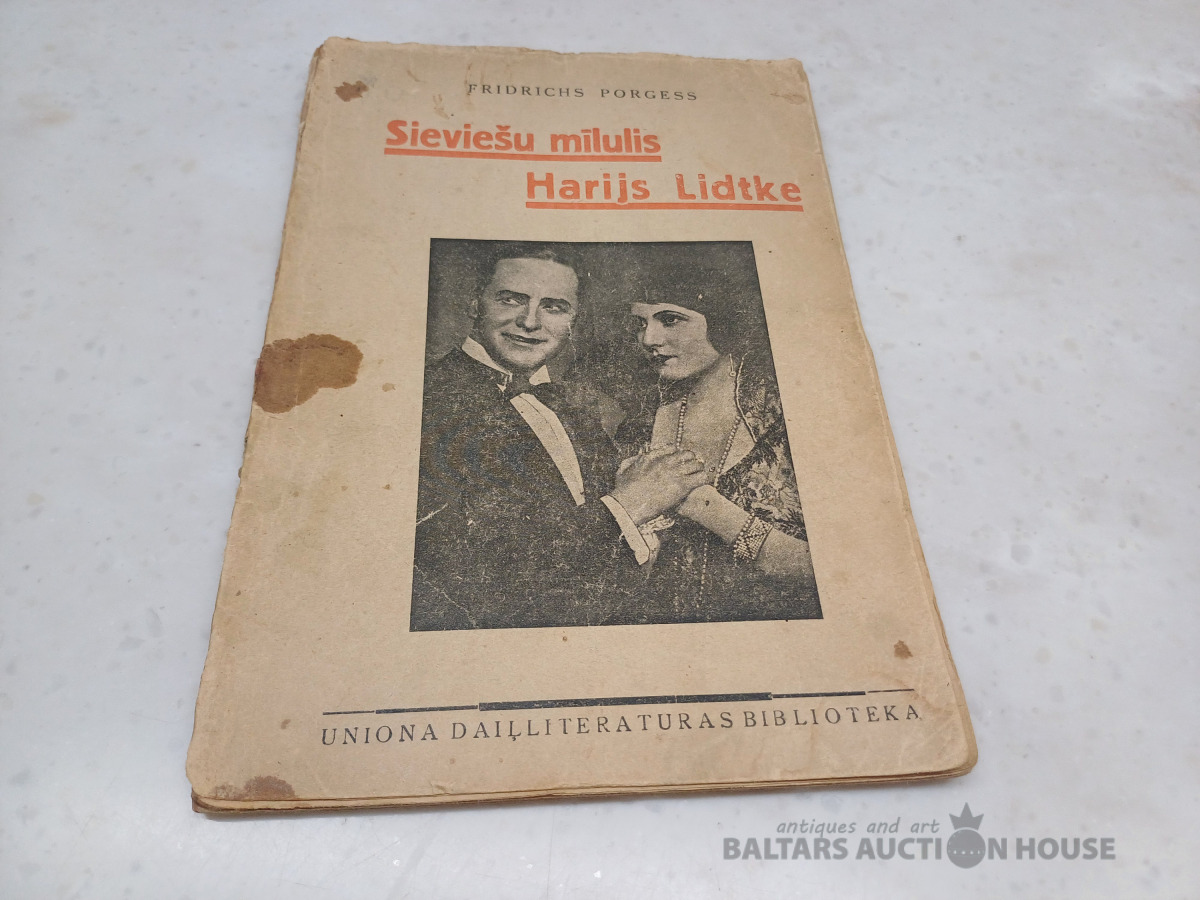 Porgess SIEVIEŠU MĪLULIS HARIJS LIDTKE, 1930tie. UNIONA izdevums. AR ZĪMOGU "T. Bērziņš" uz aizmugurējā vāka / Teodors Bērziņš (1898–1992) – grāmatizdevējs un grāmatu un rakstāmlietu tirgotājs, apgāda "Grāmatu Zieds" īpašnieks (1936–1940)
