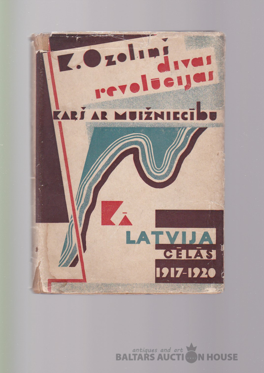 K. Ozoliņš – Divas revolūcijas, karš ar muižniecību 1917–1920, 1934. g. / Apvāks saglabāts. Aizliegtā literatūra. Avangards – zīmējis Romans Suta