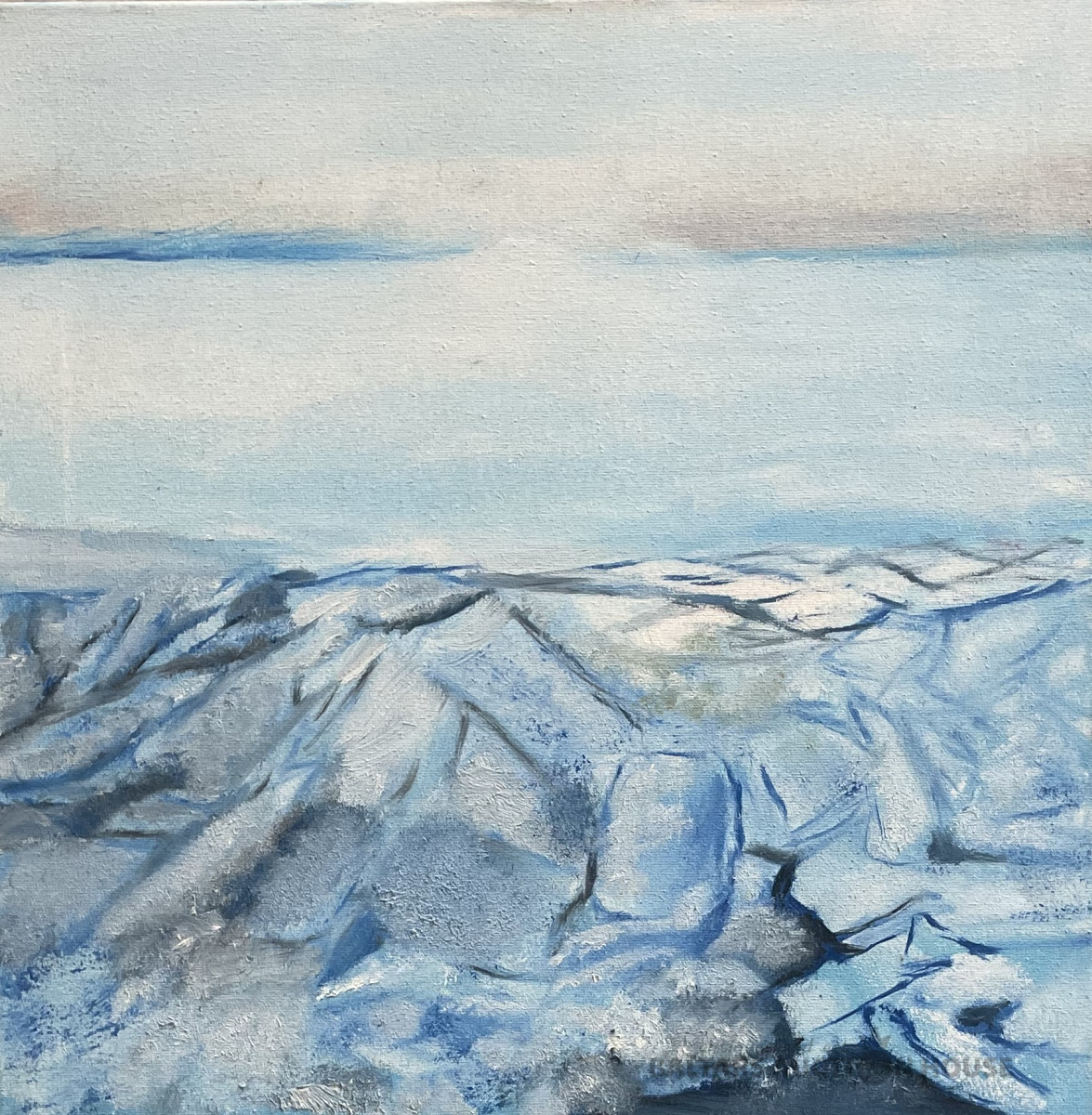 Autors nezināms, Ledus kalni jūras krastā, a.e. 40x40 cm