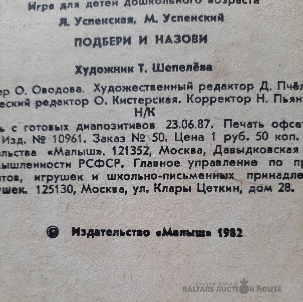 Bērnu spēle " Подбери назови" logopēdijas loto, 1989.gads PSRS .
