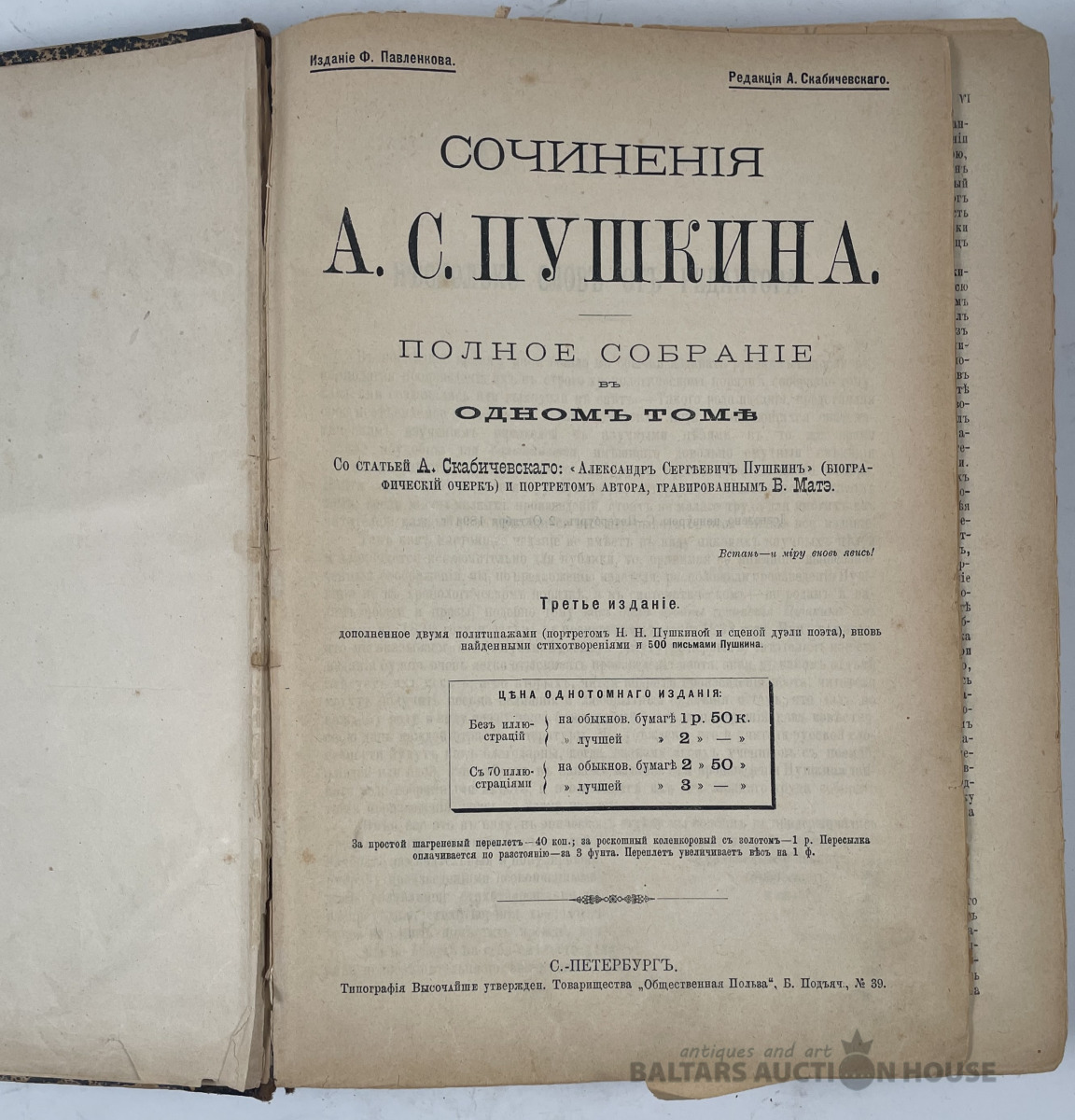 Grāmata Puškina kopotie raksti vienā sējumā, 3.izdevums, grāmata vietām neturas kopā , lapas samērā tīras