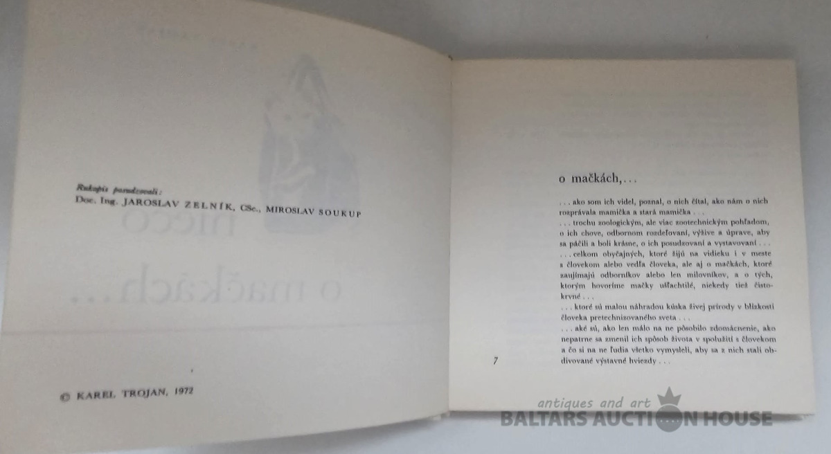 Kaut ko par kaķiem.., 180 lpp. Kaķu katalogs ar dažādu kaķu (šķirņu) bildēm. Čehu val. 1972.g