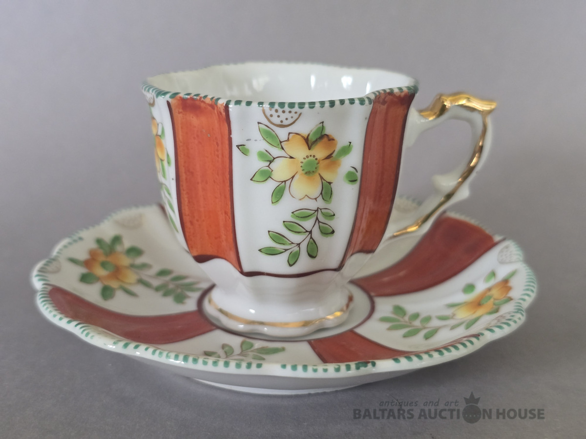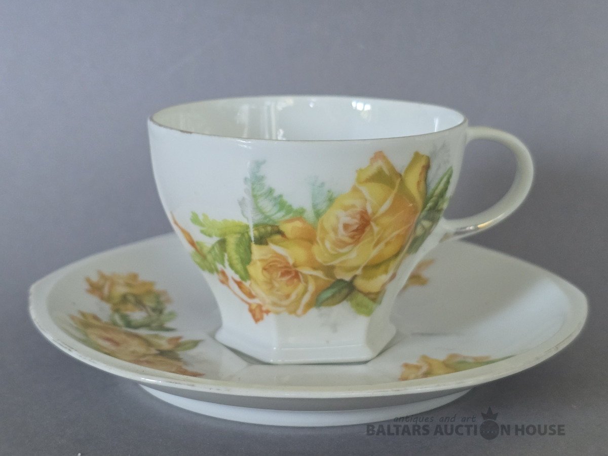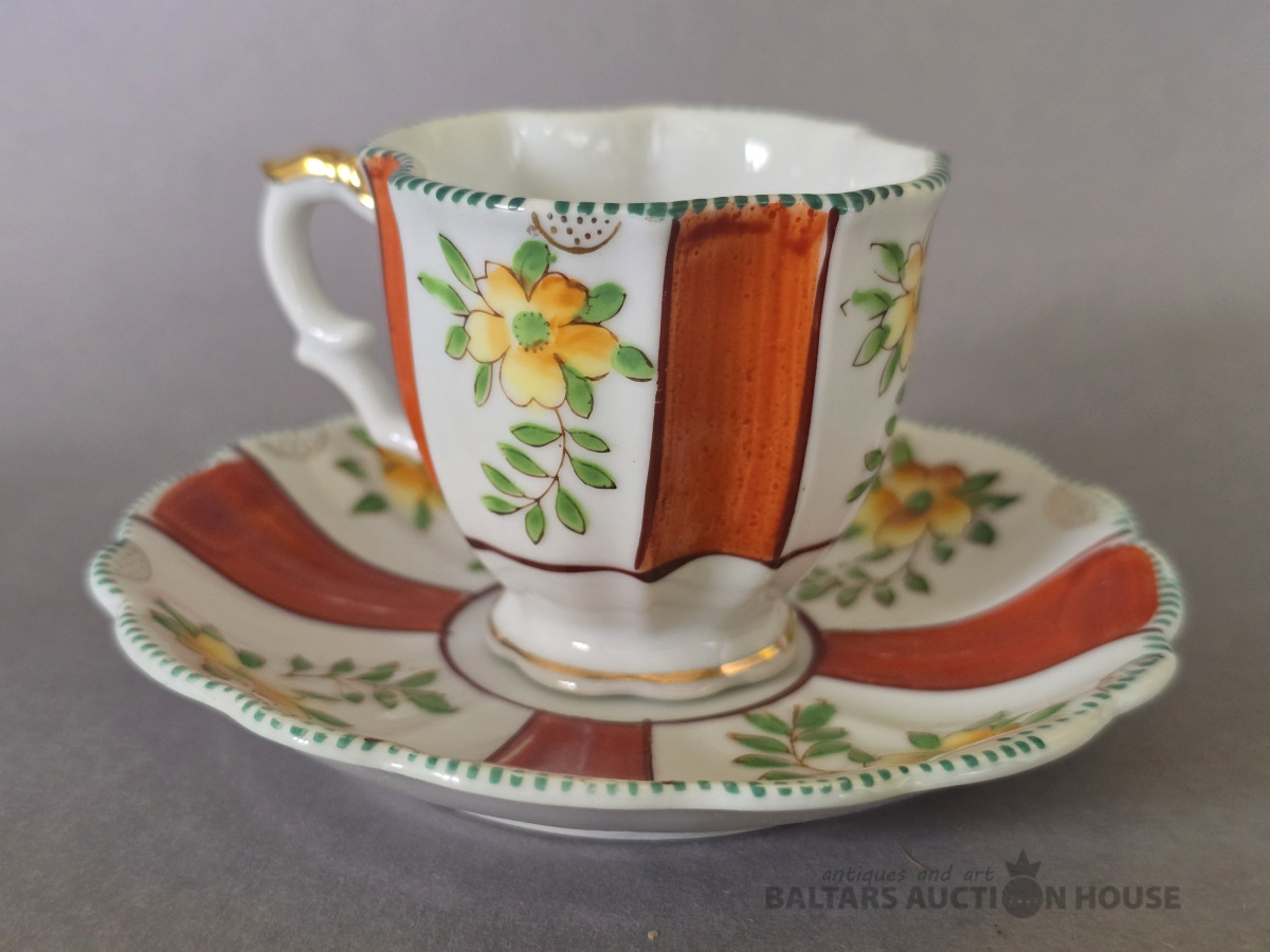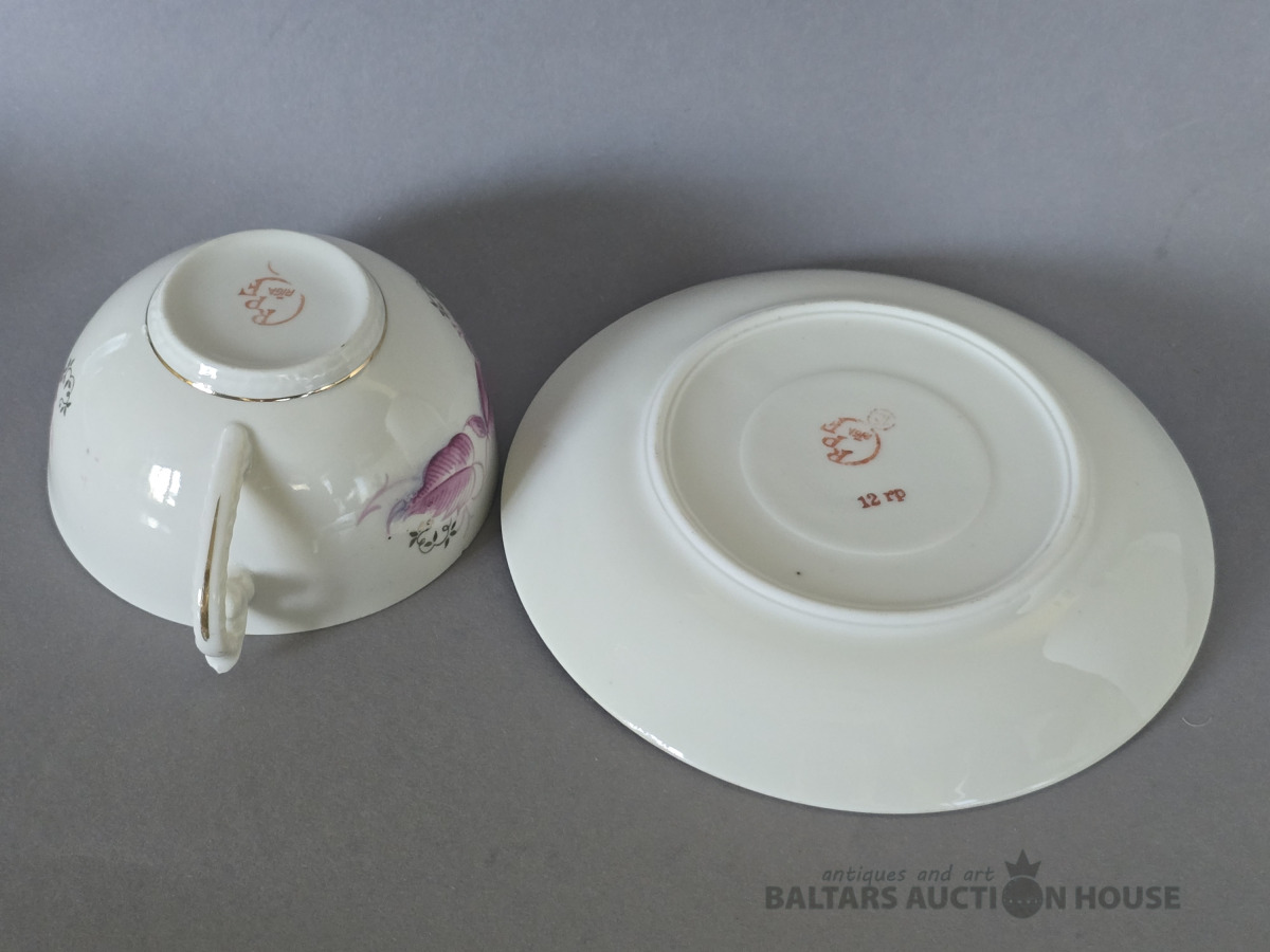 Porcelāna tējas komplekts. Servīze Laima. Rīgas porcelāna fabrika. Roku gleznojums.