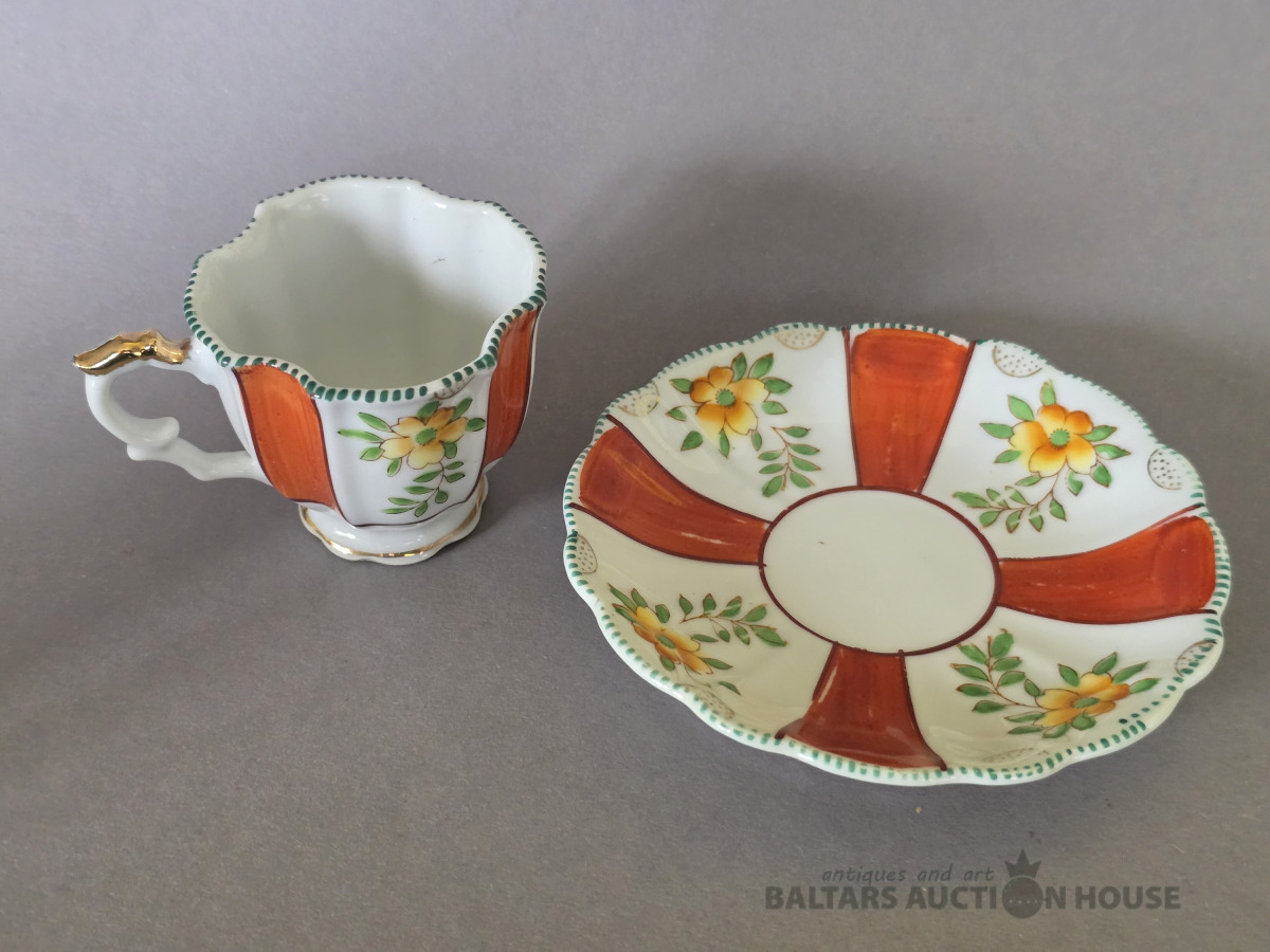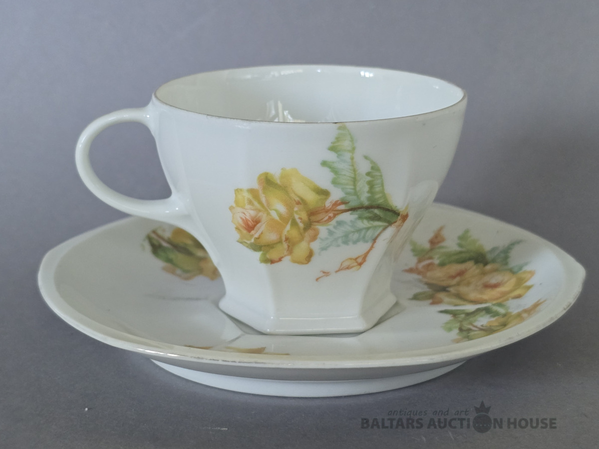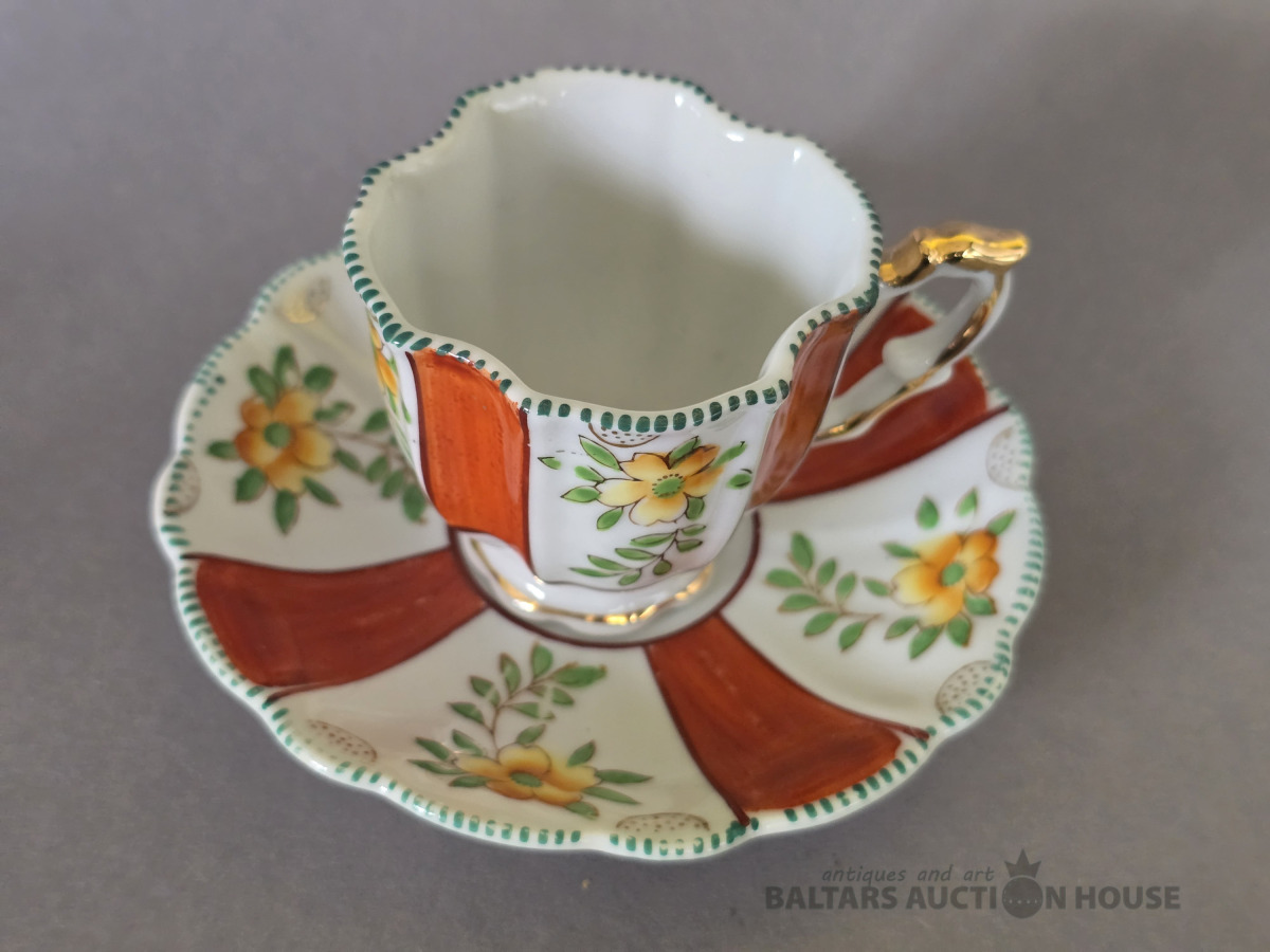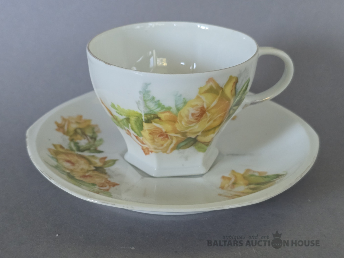 Porcelāna tējas komplekts. Servīze Laima. Rīgas porcelāna fabrika. Roku gleznojums.
