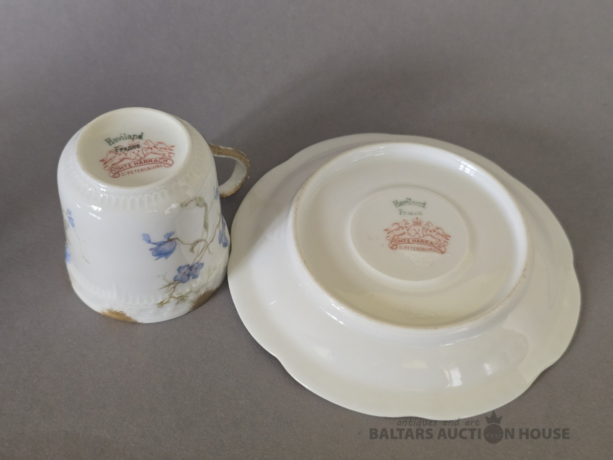 Izsmalcināts porcelāna kafijas komplekts.No Grāfa Garaha personīgās kolekcijas. Sanktpēterburg-Francija. 19 gs Porcelāna zīmoli Comte Harrach St. Pēterburgas vai Harrahas grāfa izstrādājumi mūsdienu Krievijas antīko priekšmetu pasaulē ir diezgan reti. Šis zīmols ražo izcilus ar rokām apgleznotus porcelāna izstrādājumus, kurus iekāro vairums kolekcionāru un antīko priekšmetu entuziastu to augstās kvalitātes un pārsteidzošā dekorējuma dēļ. Grāfa Harraha kristāla un porcelāna tirdzniecības nami atradās Maskavā un Sanktpēterburgā. "Grāfs Harrahs" bija grāfa Harraha personīgā emblēma. Grāfs Harrahs ražoja porcelāna izstrādājumus sadarbībā ar ražotājiem Francijā un Polijā, kā rezultātā porcelāna izstrādājumiem vienlaikus bija vairākas preču zīmes. Grāfa Harraha sadarbību laikā ar slavenām Eiropas porcelāna fabrikām tika izgatavoti ļoti interesanti porcelāna galda piederumi un tējas servīzes, kas izcēlās ar savu greznību un ļoti māksliniecisko ziedu dekoru ar bagātīgu zeltījumu. Darbi izcēlās ar porcelāna virsmas reljefo tekstūru. Grāfa Harraha darbi izcēlās ar savu unikālo dekoru, spilgtu, atšķirīgu ar rokām apgleznotu vai uzdrukātu dizainu skaistumu ar akcentiem, kas atbilda tā laika Eiropas gaumei.