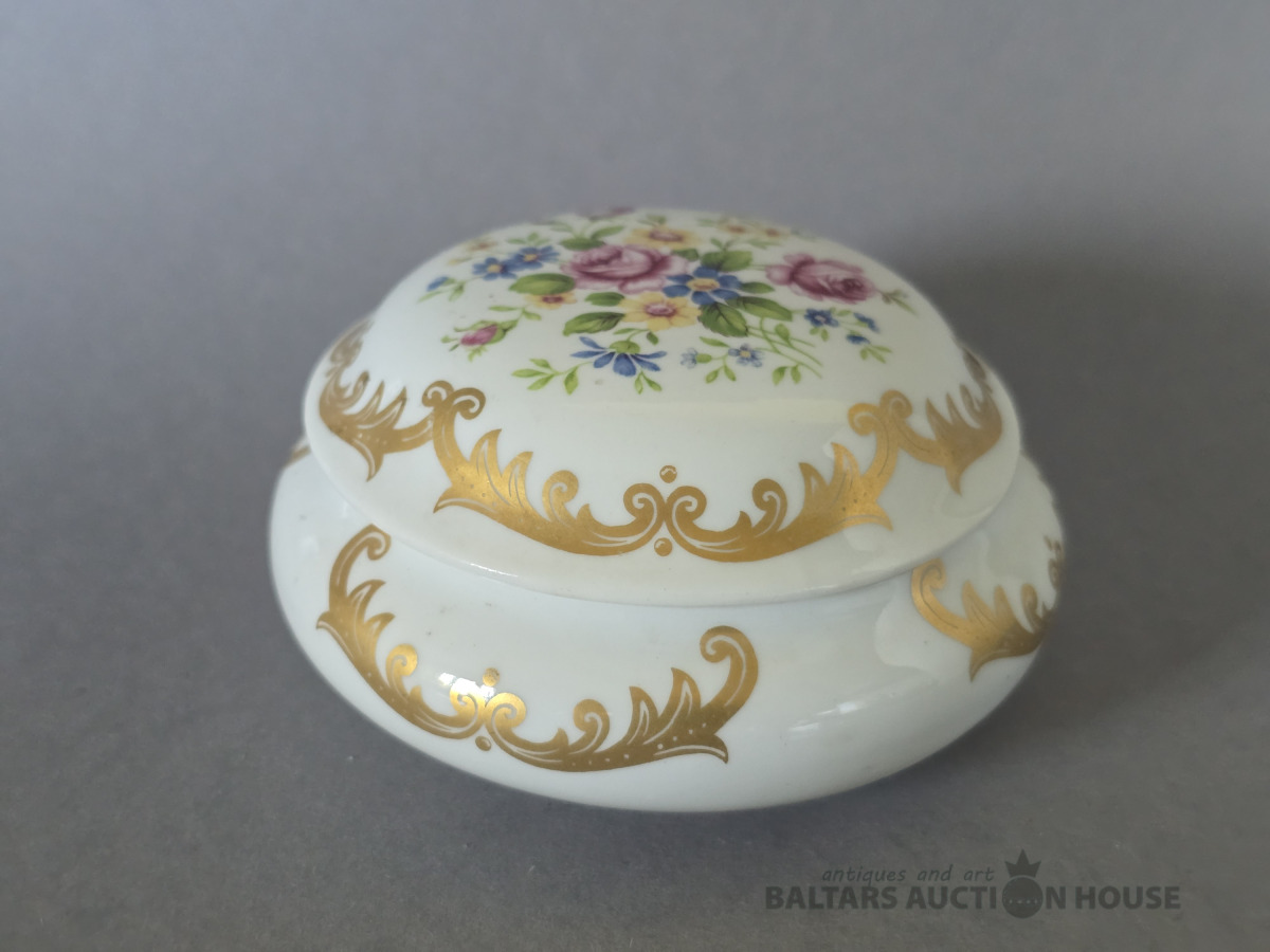 Porcelāna kastīte.Francija.Roku gleznojums,zeltījums. 12x5 cm.