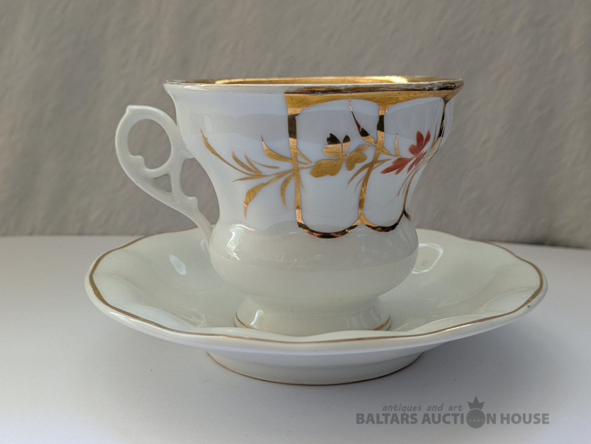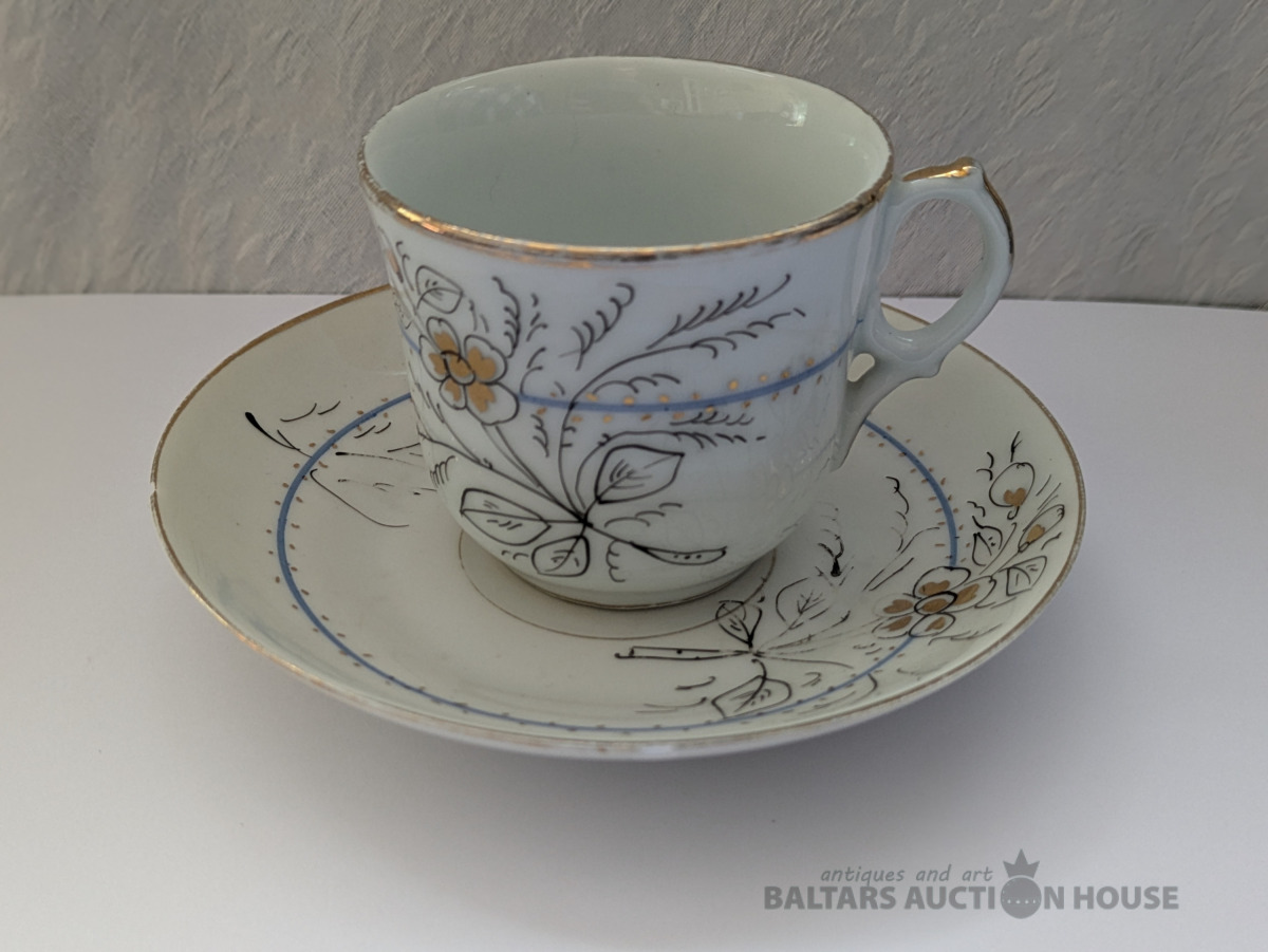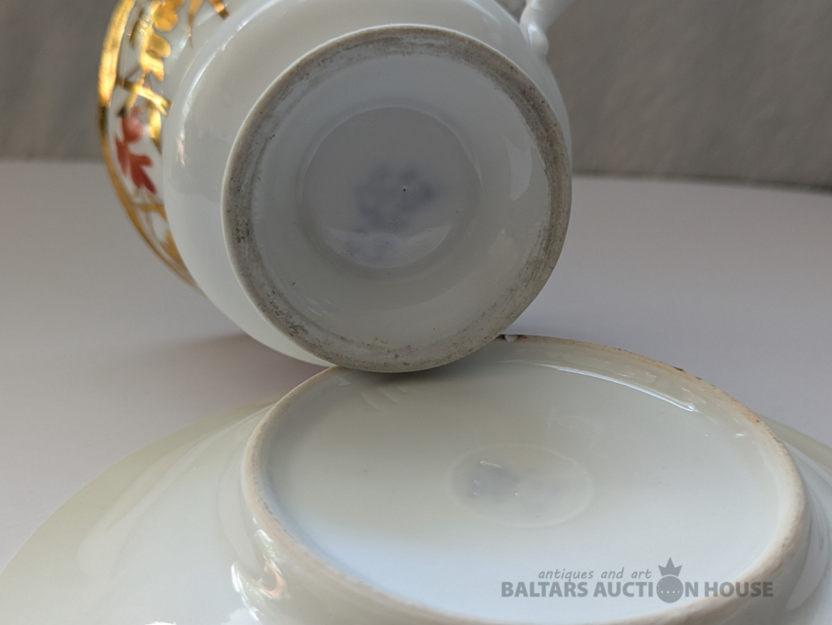 Sens porcelāna komplekts-rokas zīmējums, tilpums 150ml, ražots C.T. Altwasser, 1870-1900 gads. Ir zeltam vieglas lietojuma pazīmes