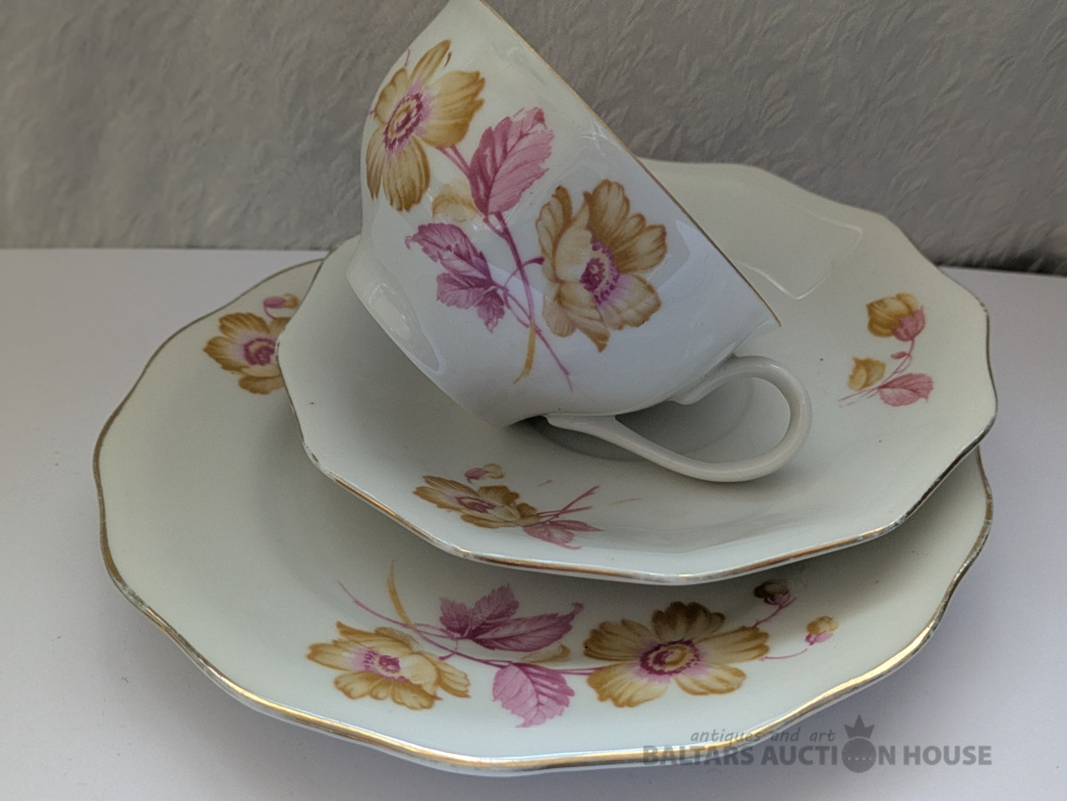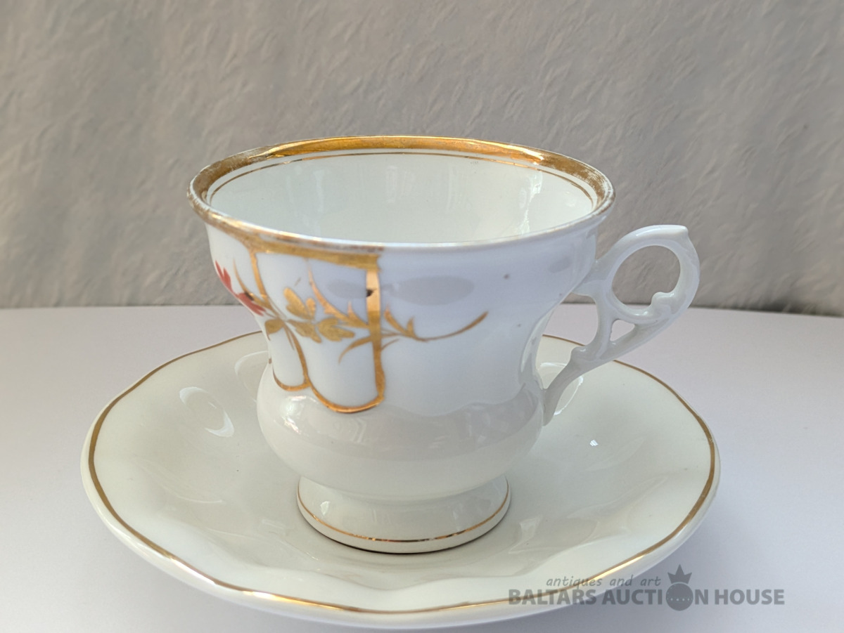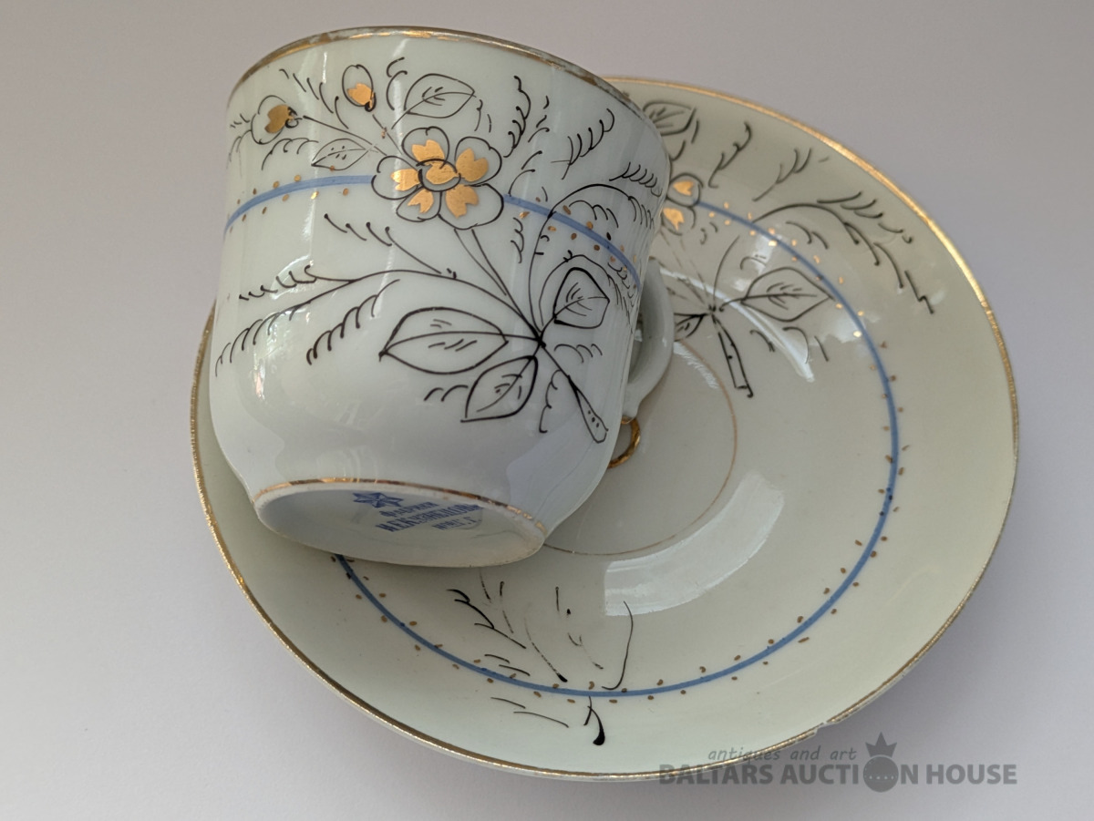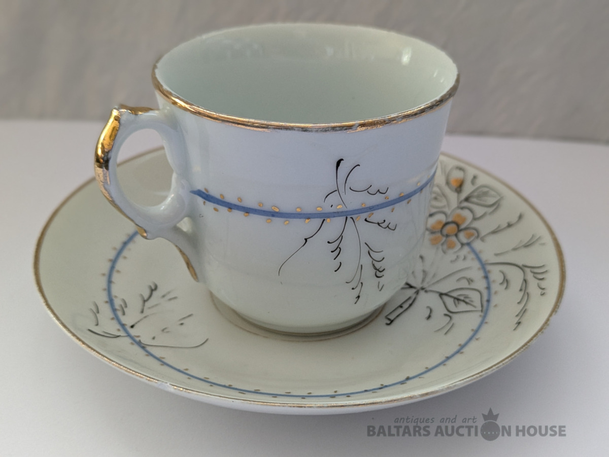 Sens porcelāna komplekts-rokas zīmējums, tilpums 150ml, ražots C.T. Altwasser, 1870-1900 gads. Ir zeltam vieglas lietojuma pazīmes