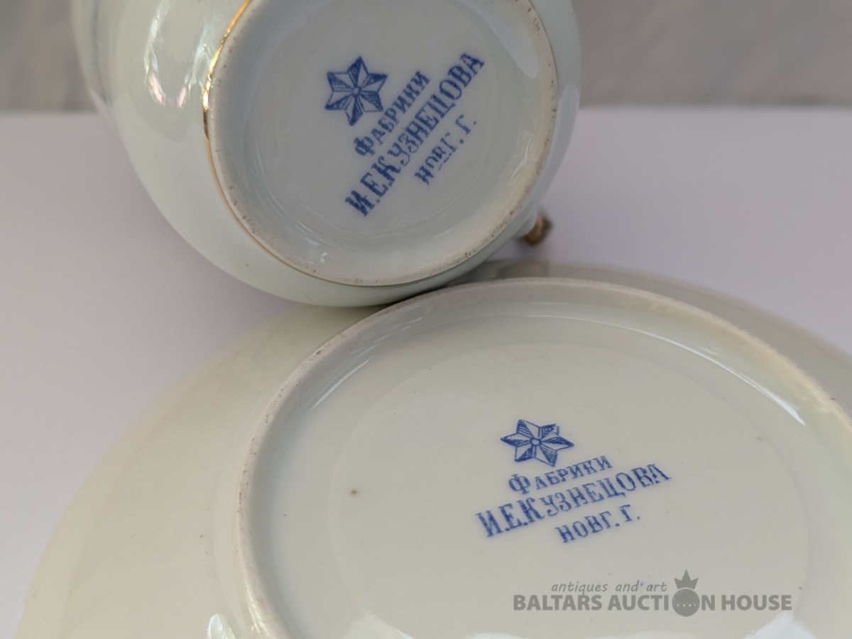 Cara laiku tasīte ar apakštasi, KUZNECOVA fabrika, ražots līdz 1915.gadam. Rokas zīmējums,ir apakštasei sīki divi atsitumi , zeltam lietojuma pazīmes- atbilstoši vec