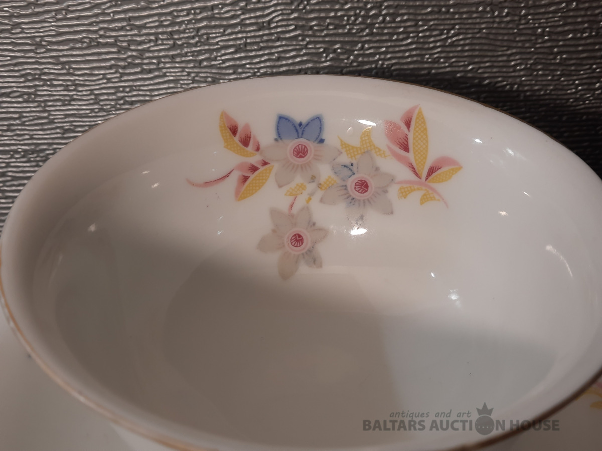 Statuete "Mūziķis ar flautu", Flautists Viktorijas laika stila tērpā, Augstums 15 cm, Rokas gleznojums, ap 1945.–1953. gadu (okupētā Japāna)