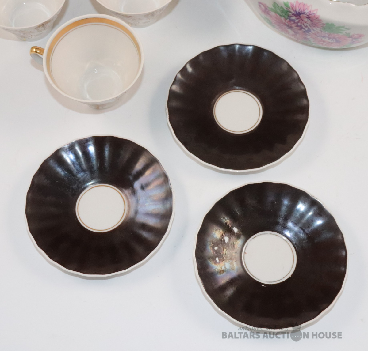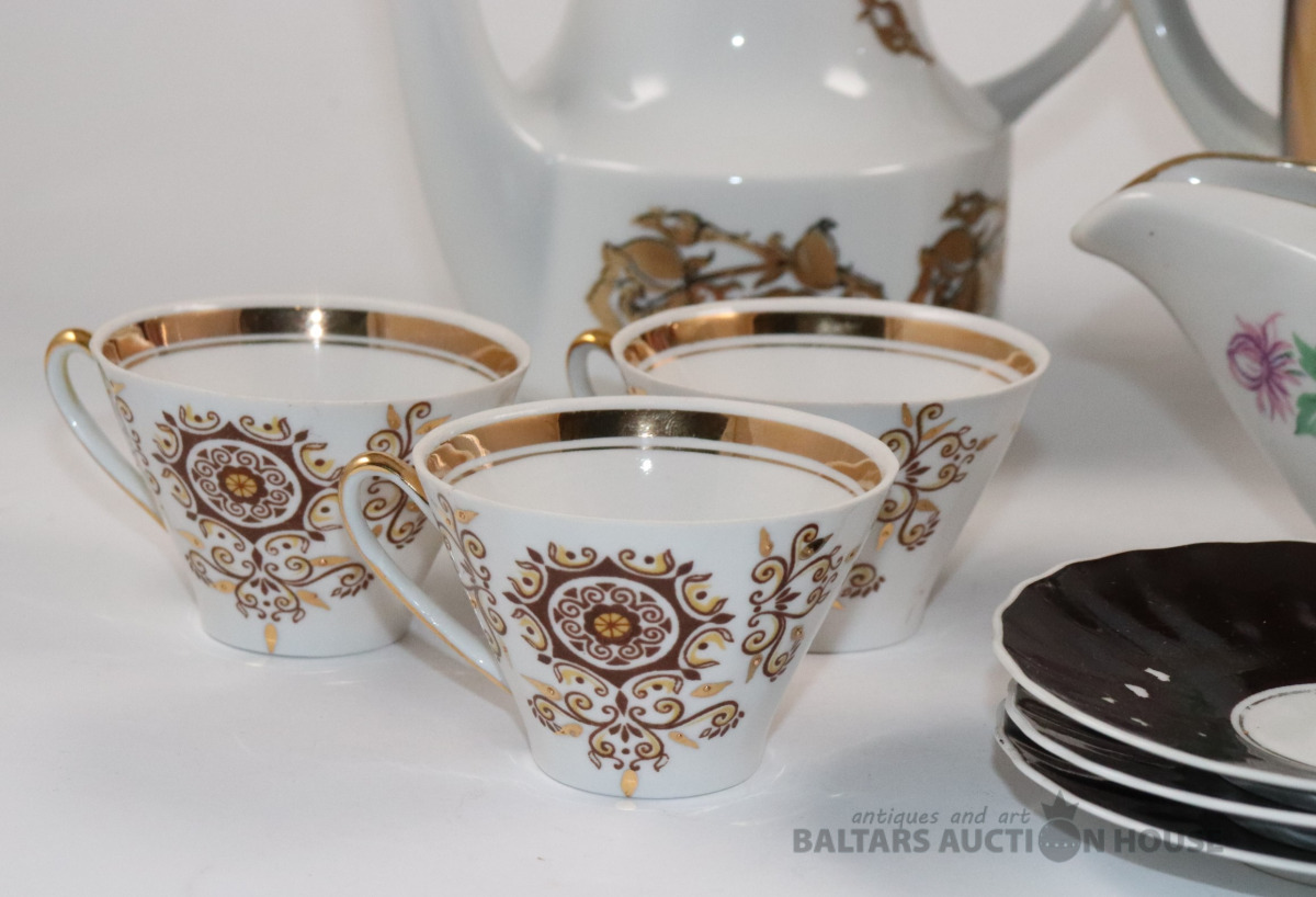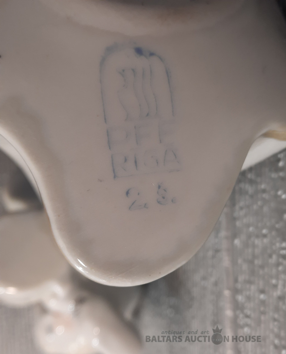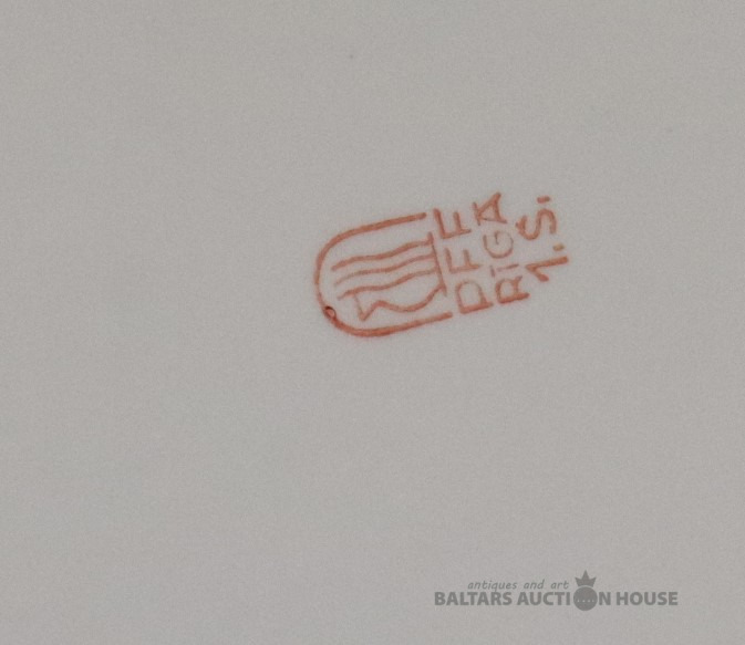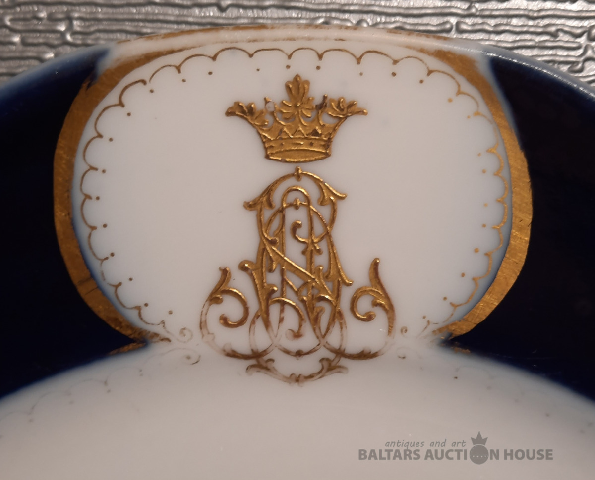 Porcelāna priekšmeti 10 gab. Mērces traukam nošķēlums, vienai apakštasei krāsas nodilumi.
