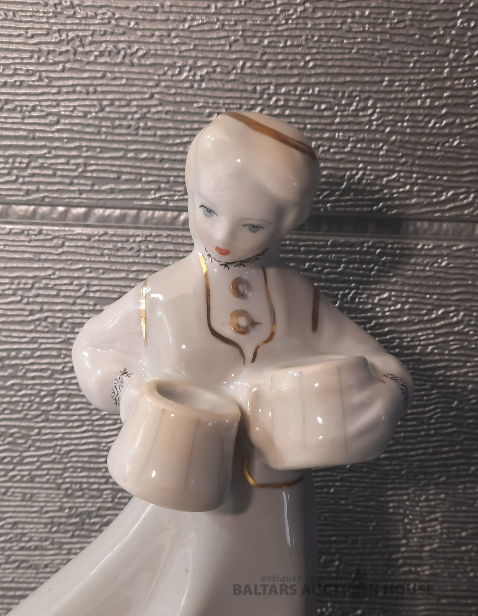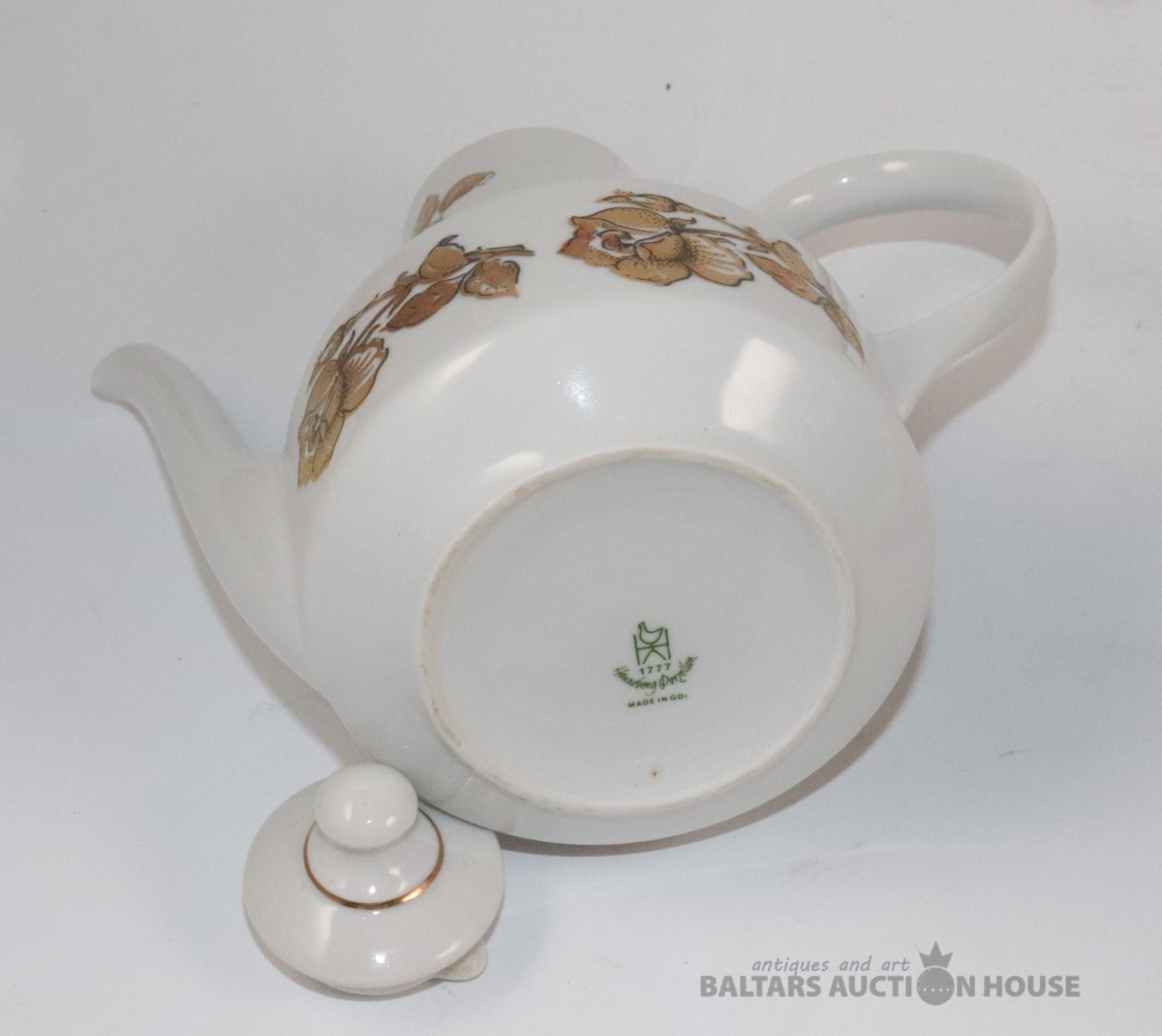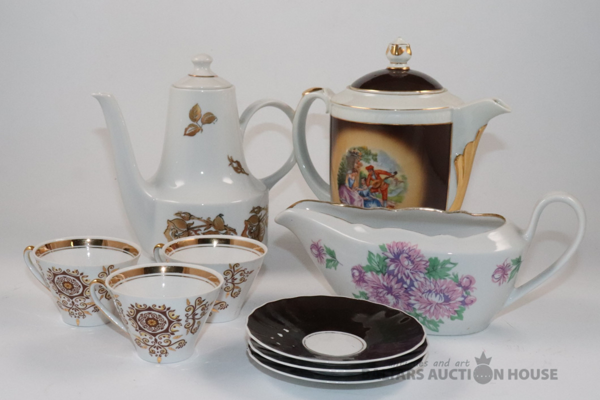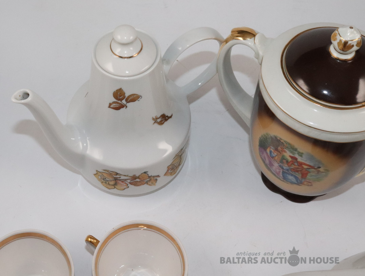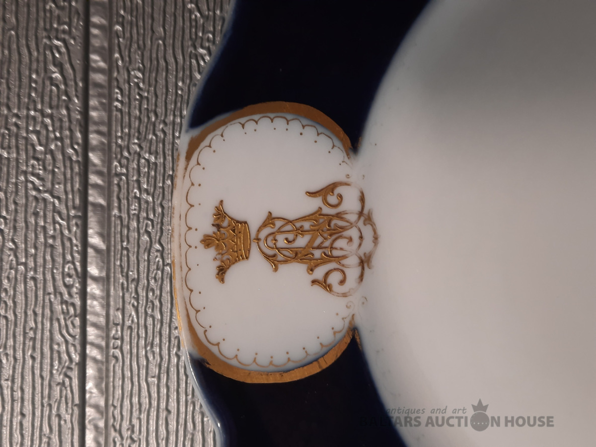 Porcelāna priekšmeti 10 gab. Mērces traukam nošķēlums, vienai apakštasei krāsas nodilumi.