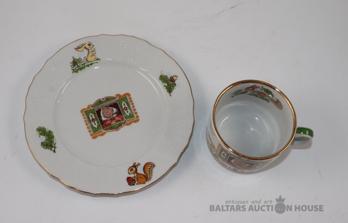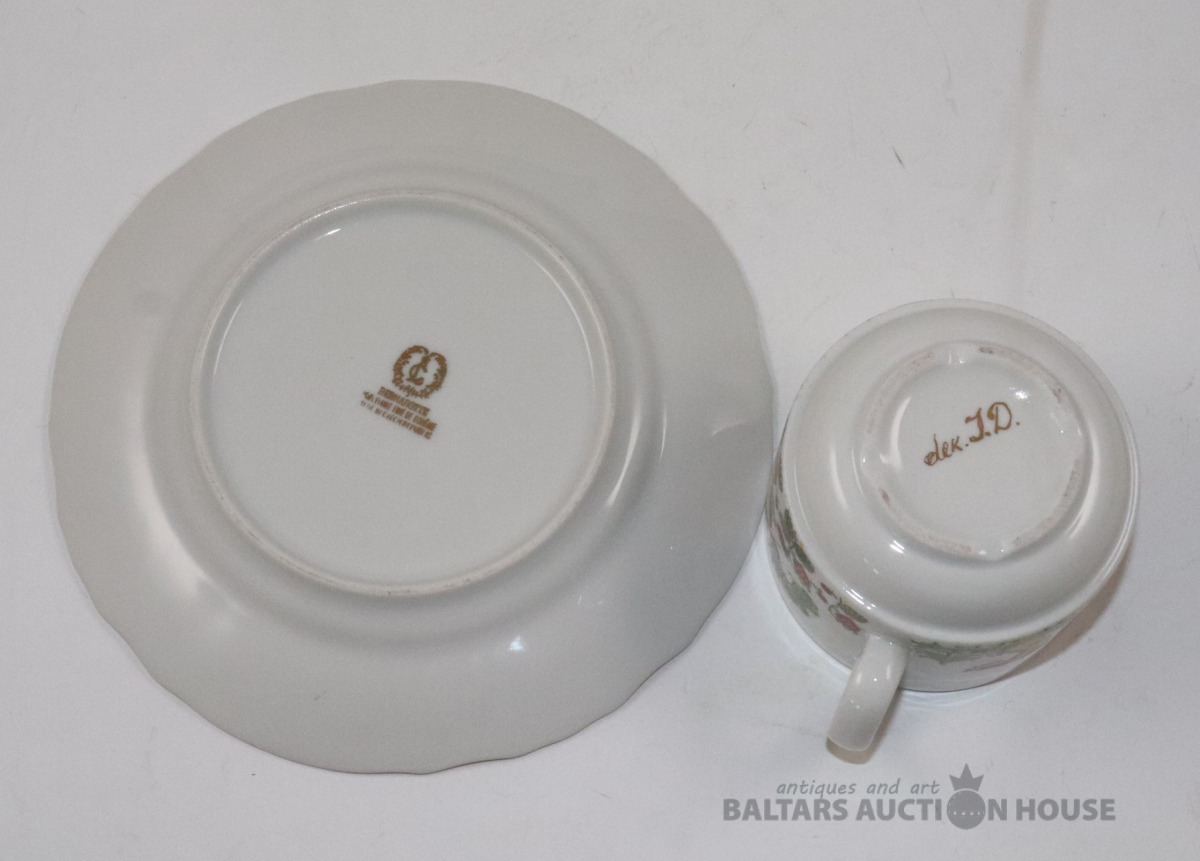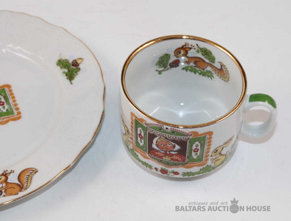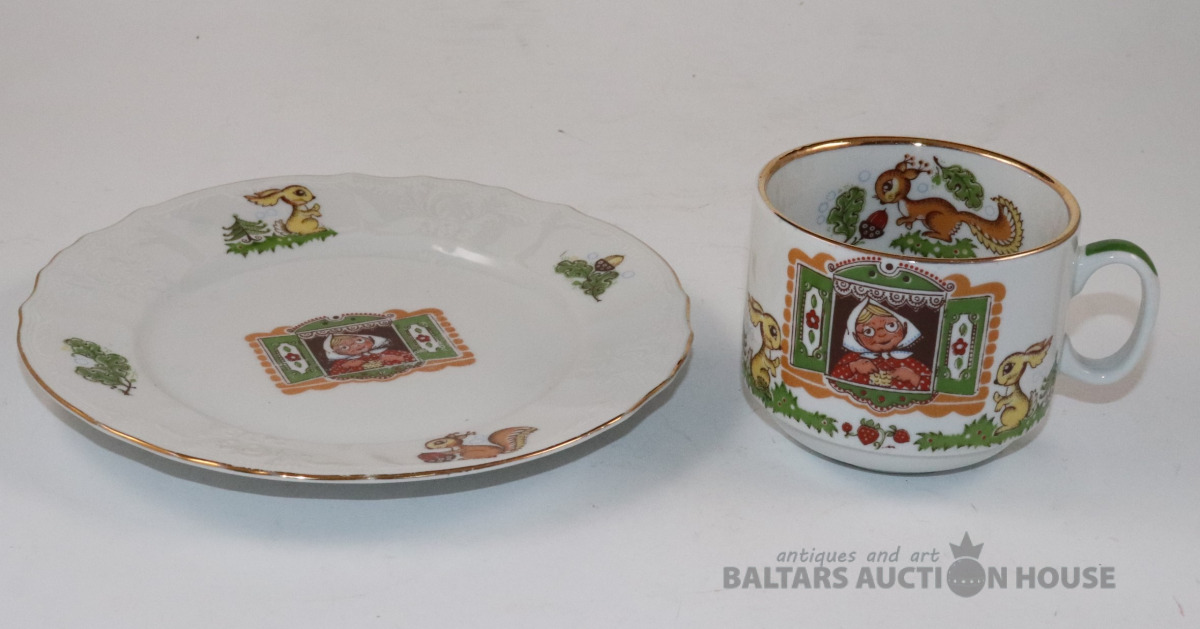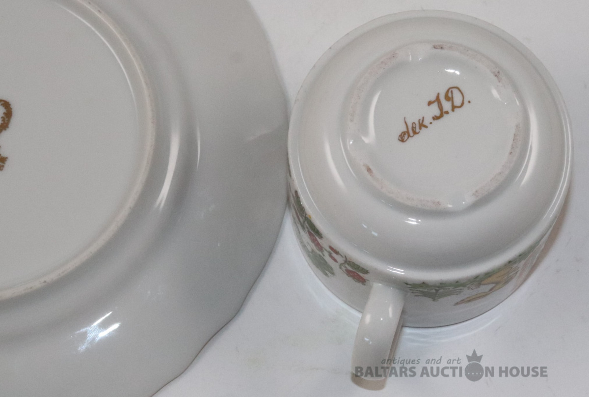 Krūze un šķīvis. Porcelāns. I. Dreiblates dekols. d=19,2 cm. Krūze h=7,2 cm. d=8,3 cm