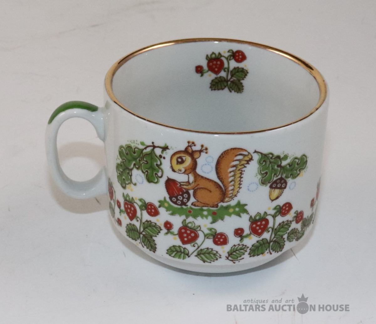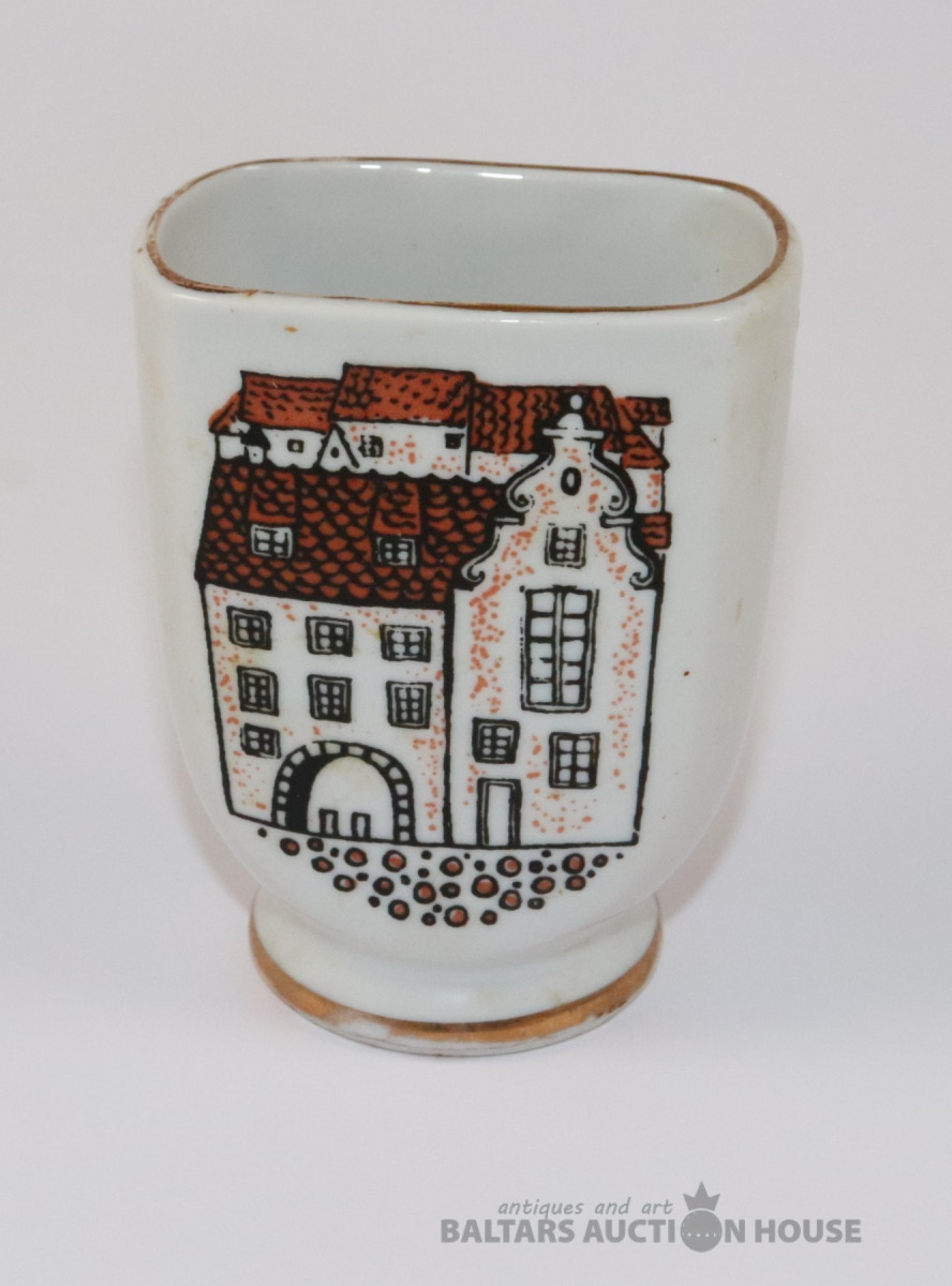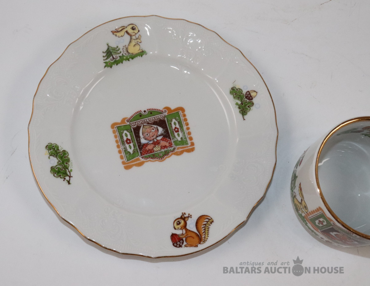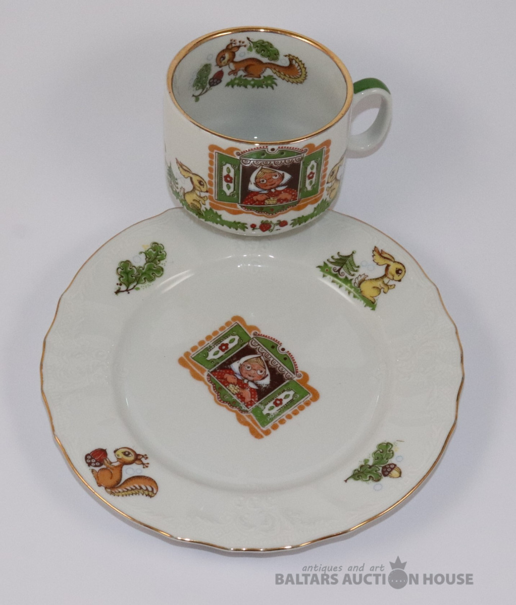 Krūze un šķīvis. Porcelāns. I. Dreiblates dekols. d=19,2 cm. Krūze h=7,2 cm. d=8,3 cm