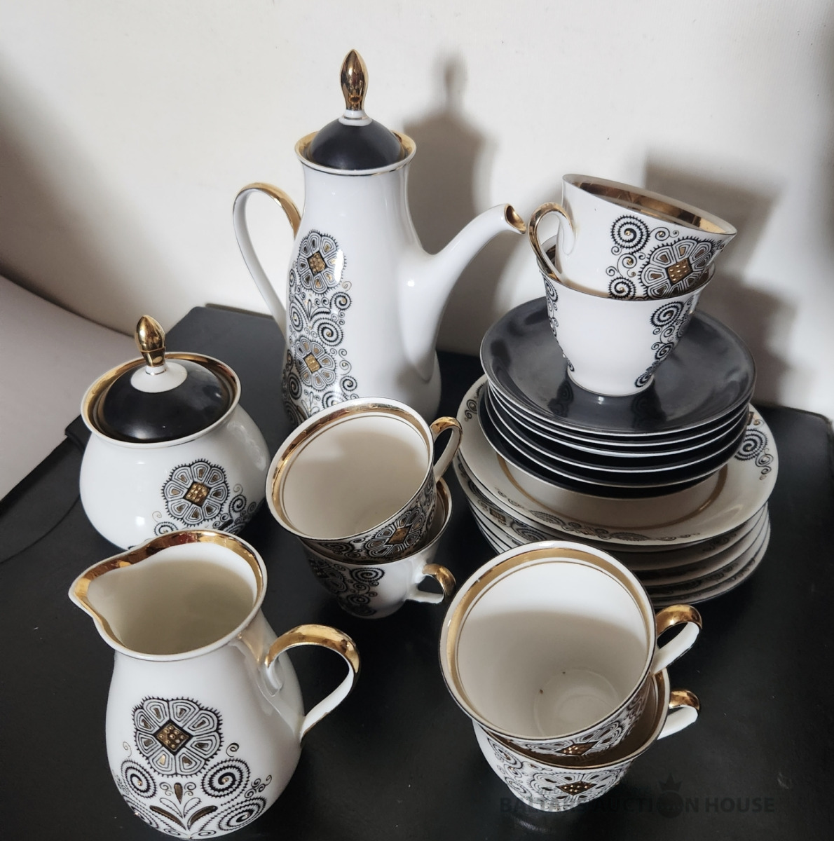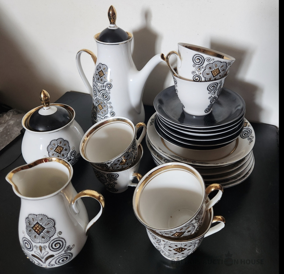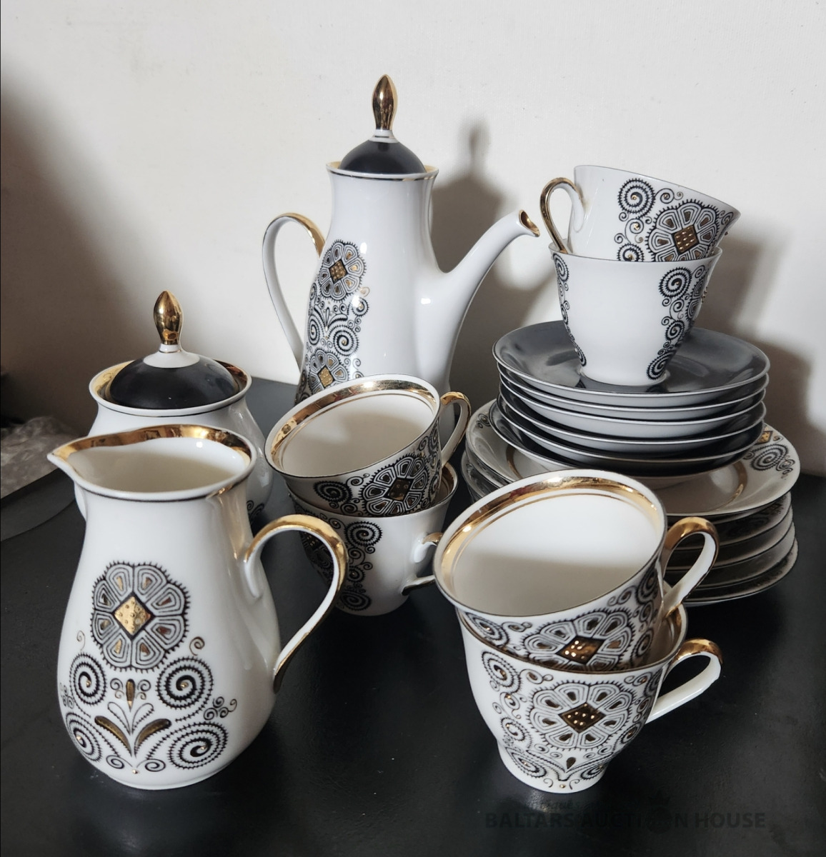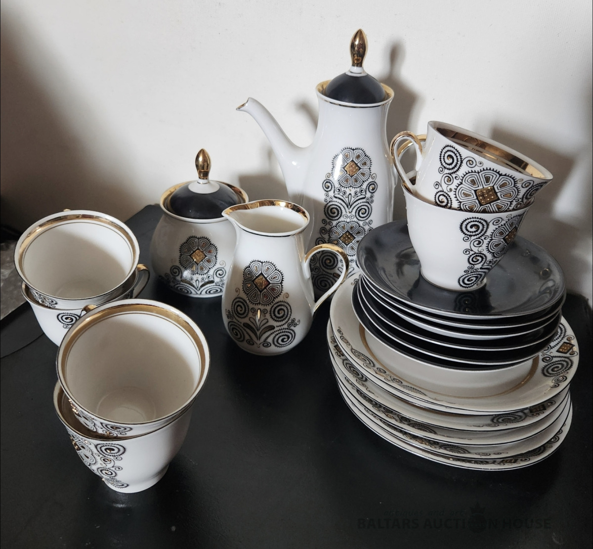 Kafijas trio, porcelāns, zeltījums, Vācijā, šķīvīšu diametrs attiecīgi 16 cm un 11,5 cm; tasītes augstums 5 cm,