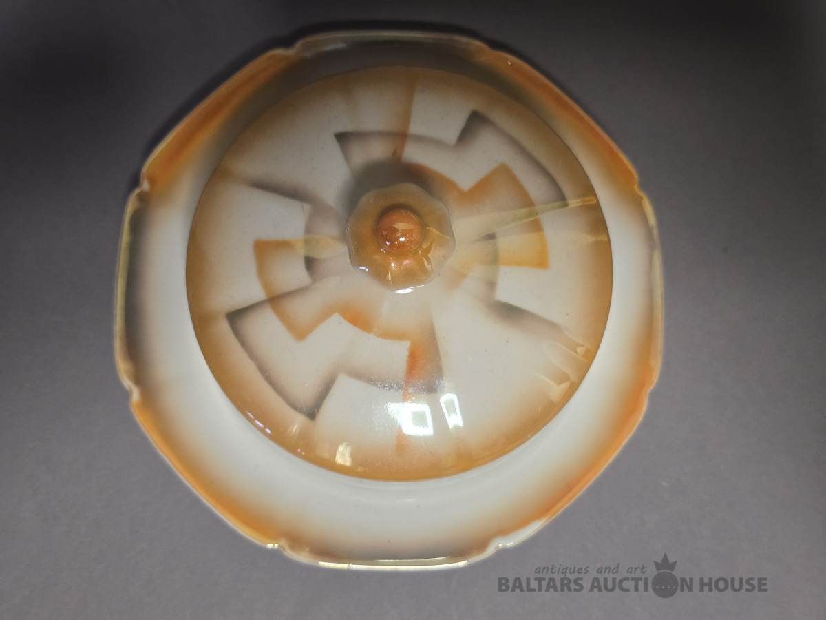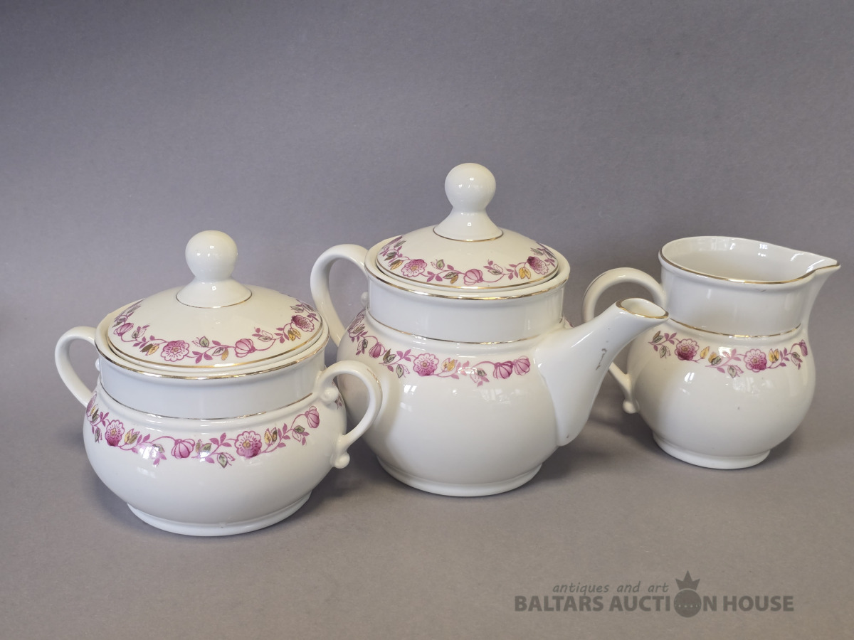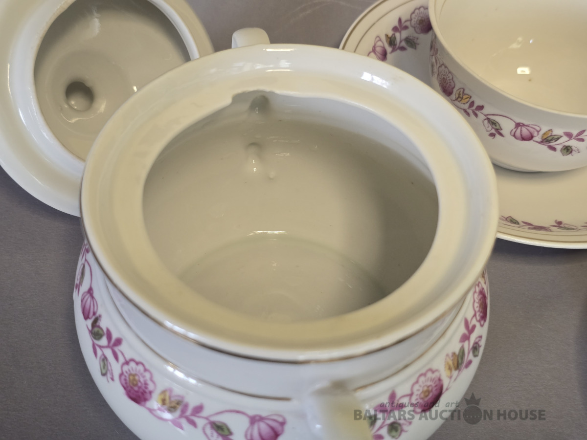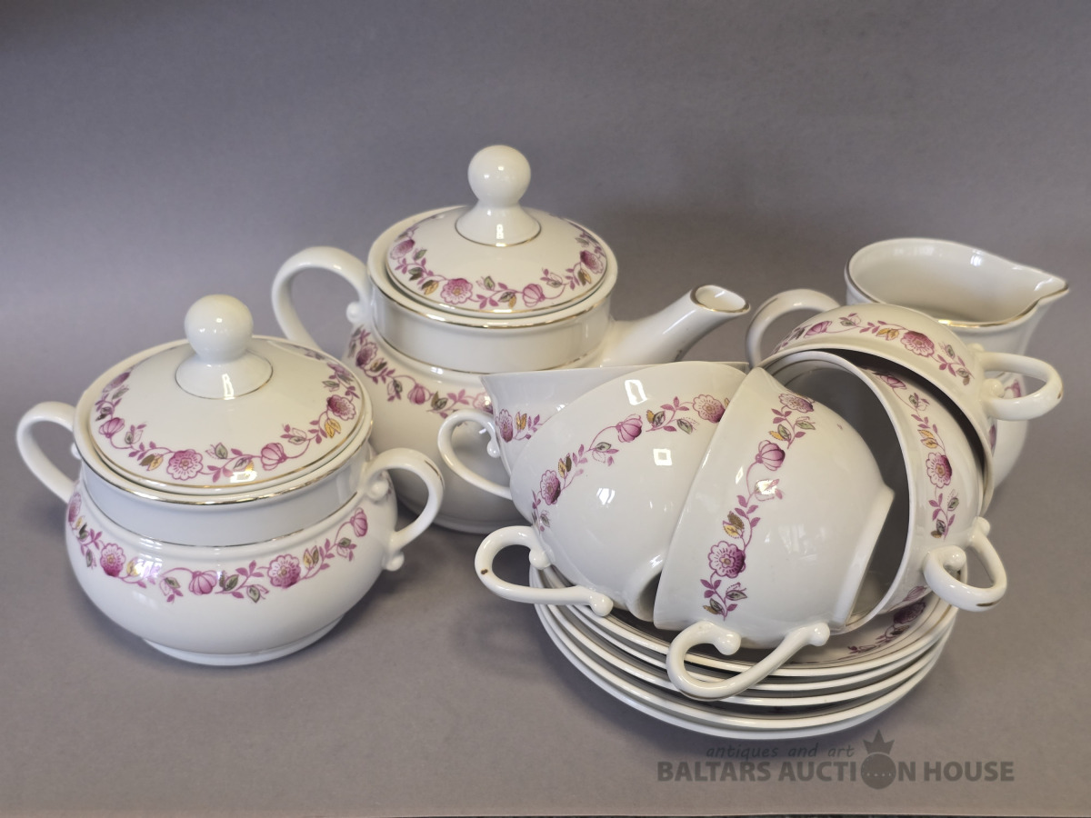 Porcelāna servīze Tauta Formas autors:Jēkabs Bīne Ražota 1939 – 1950-tie.Rīgas porcelāna un fajansa fabrika. Minimāls zelta nodilums,cukura traukam iekšpusē robiņš.
