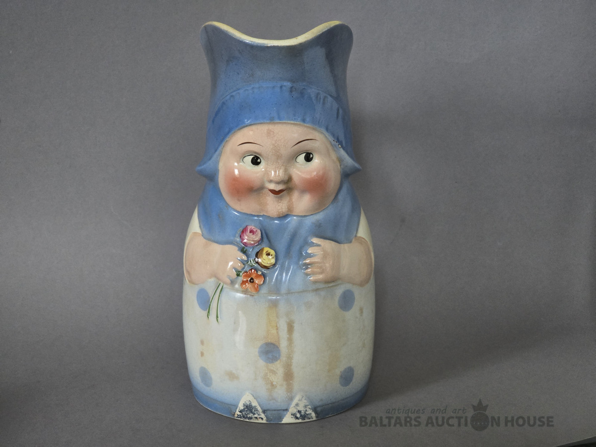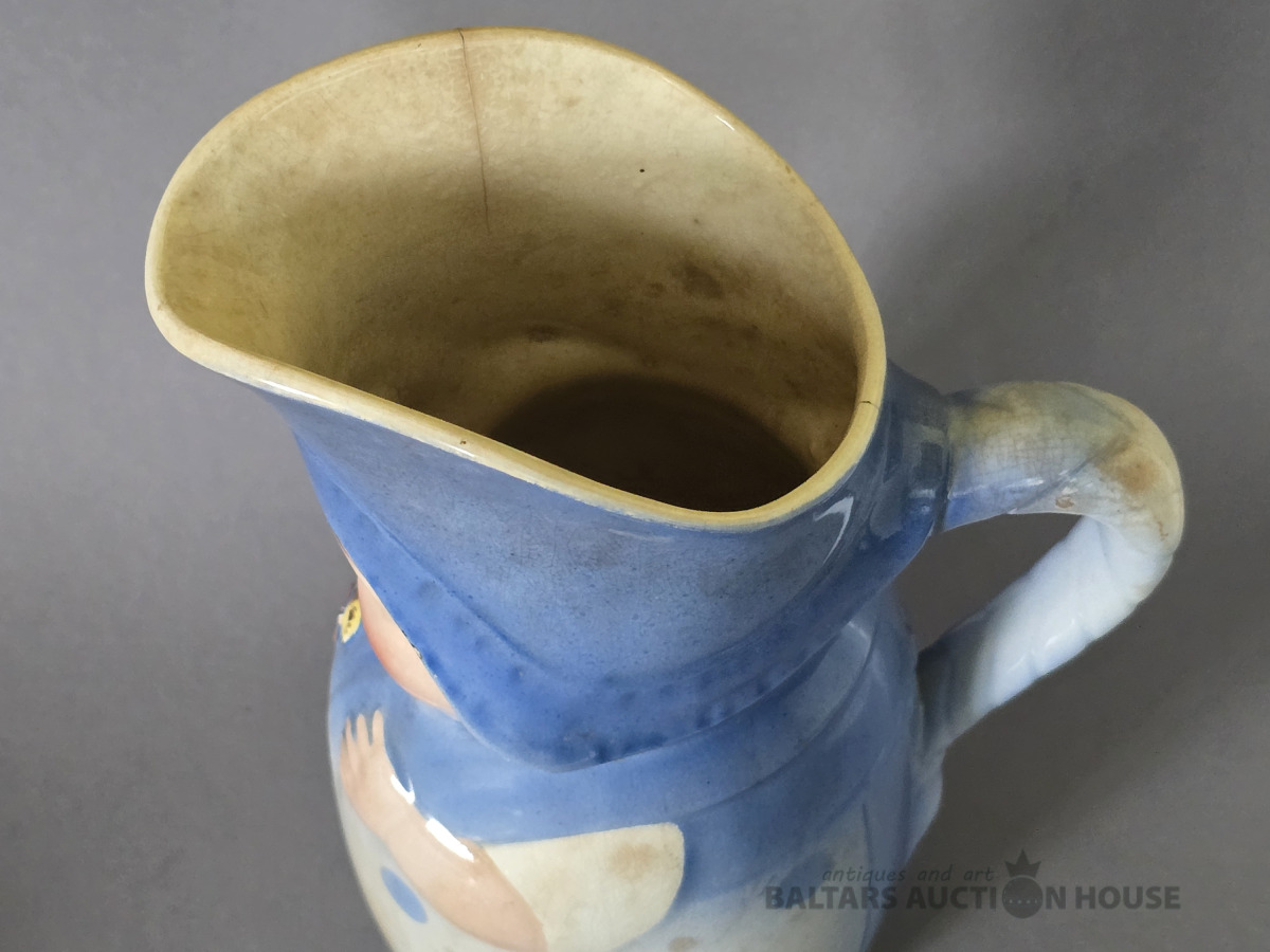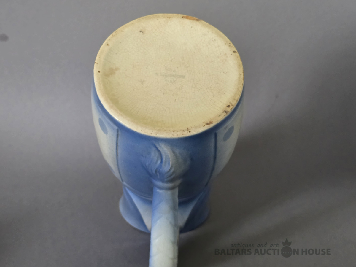 krūka, "Annele", fajanss, M.S. Kuzņecova rūpnīca, Rīga (Latvija), 1920-1933 g., h 23 cm.Neliela plaisa augšmalā.