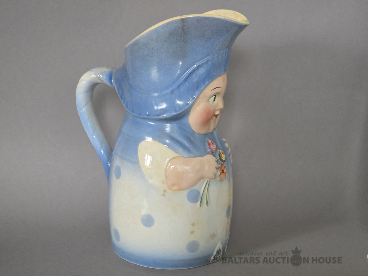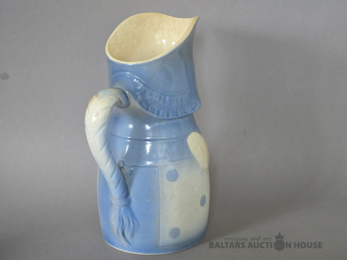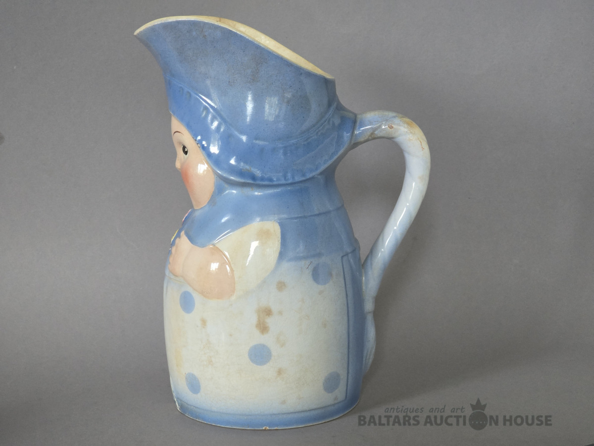 krūka, "Annele", fajanss, M.S. Kuzņecova rūpnīca, Rīga (Latvija), 1920-1933 g., h 23 cm.Neliela plaisa augšmalā.