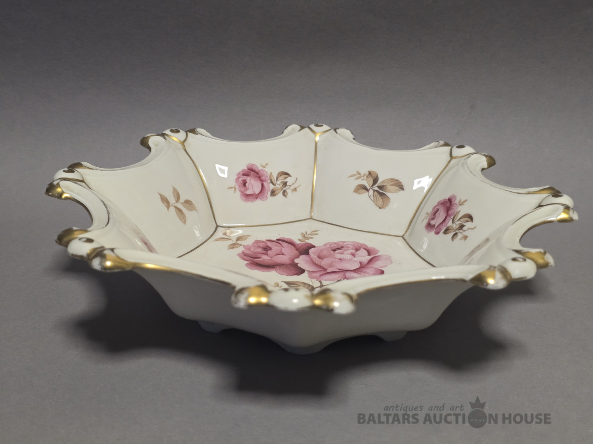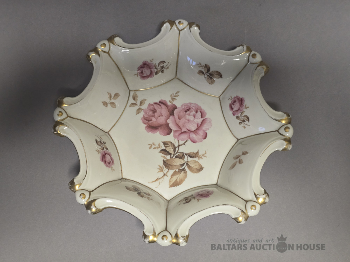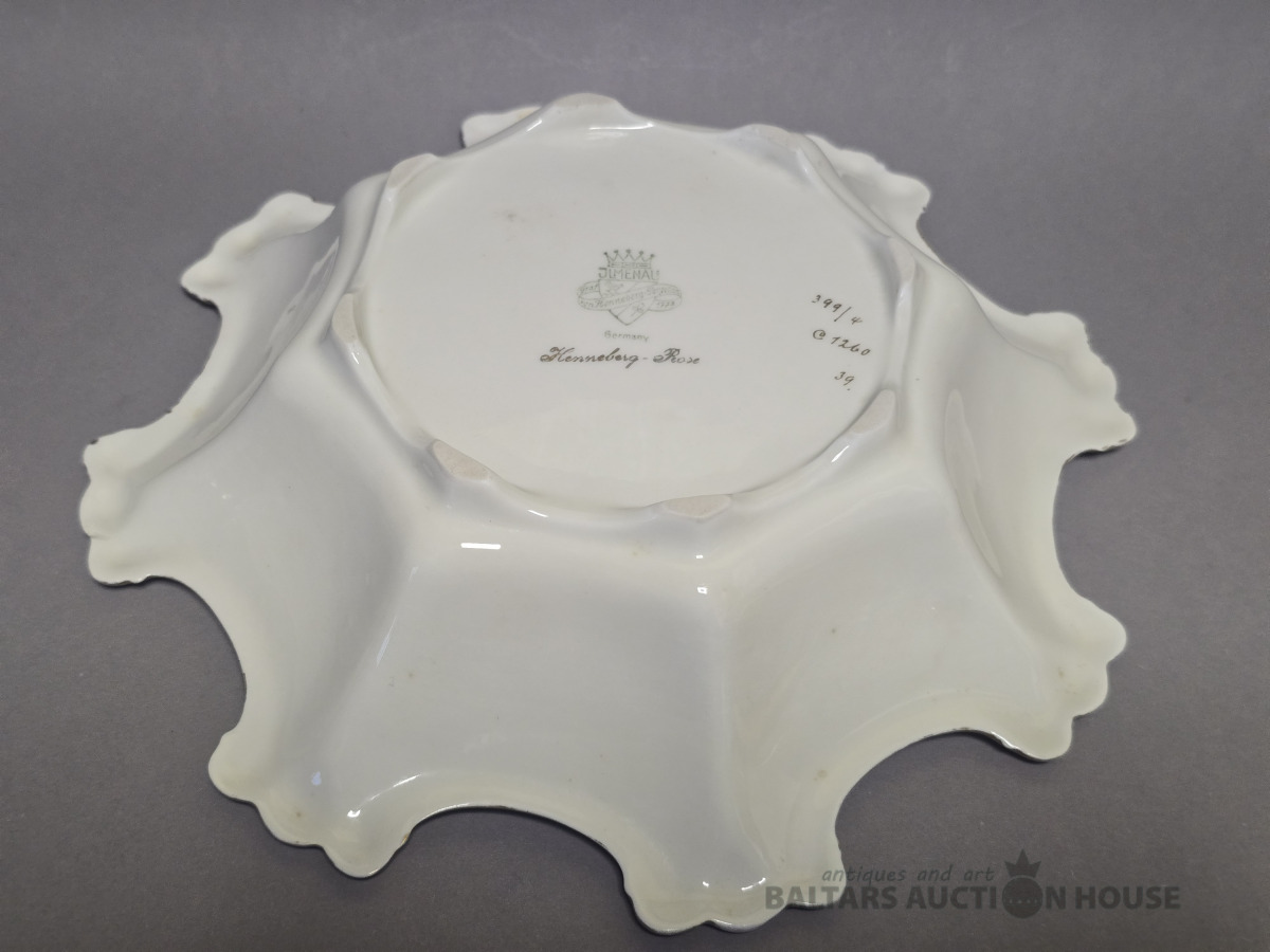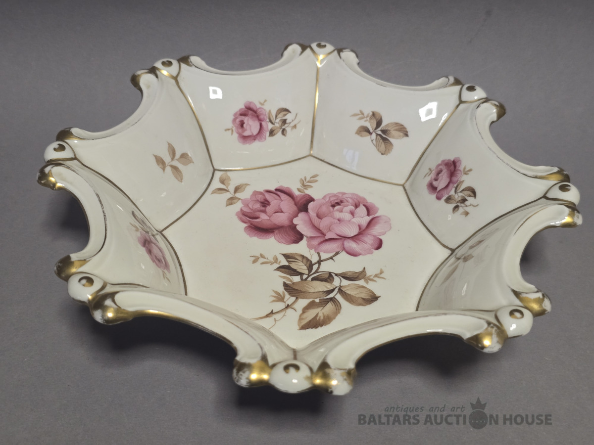 Porcelāna augļu trauks.Rozes,Ivory tonis Heneberg.Vācija.D 22.5