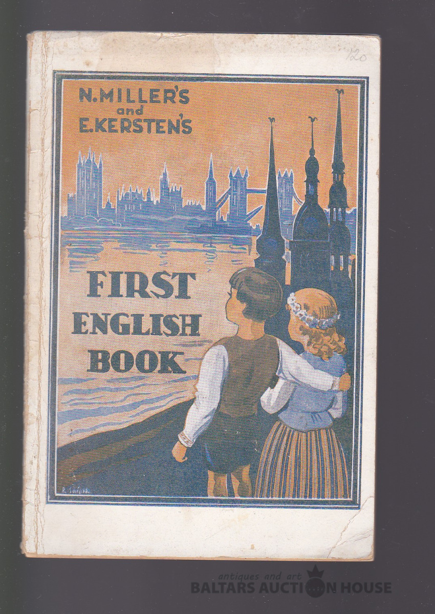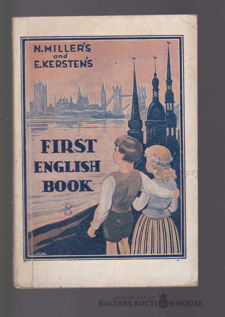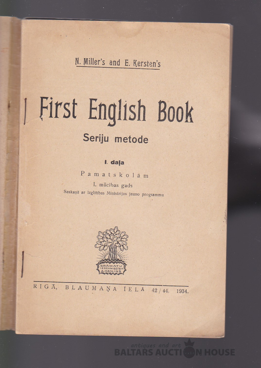 N. Miller's and E. Kersten's FIRST ENGLISH BOOK 1, 1934. g. Grāmatu izdevniecība A. Ozoliņš. Bagātīgi ilustrēta. Vāku zīm. Raimonds Šiško