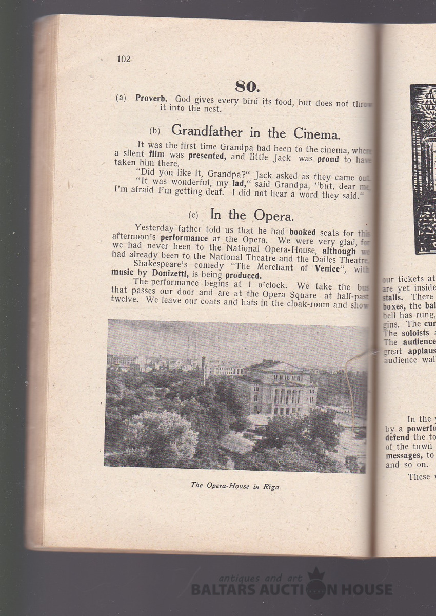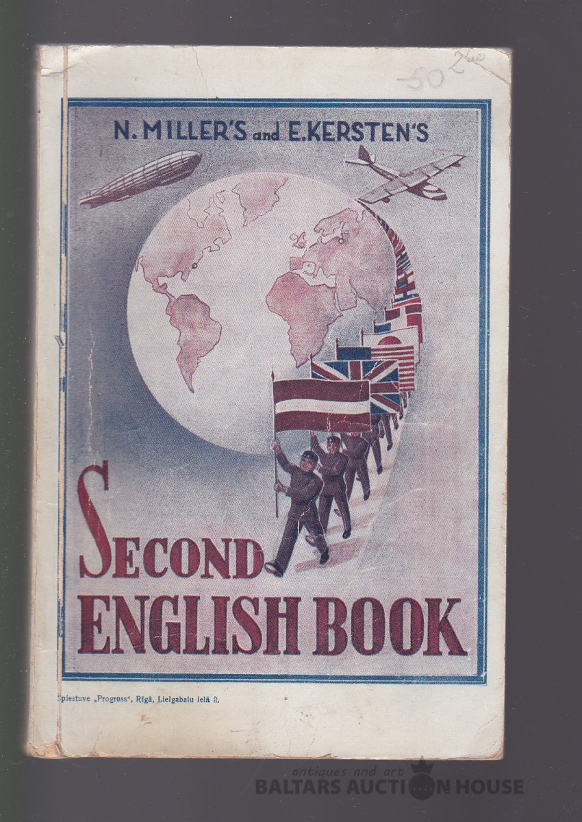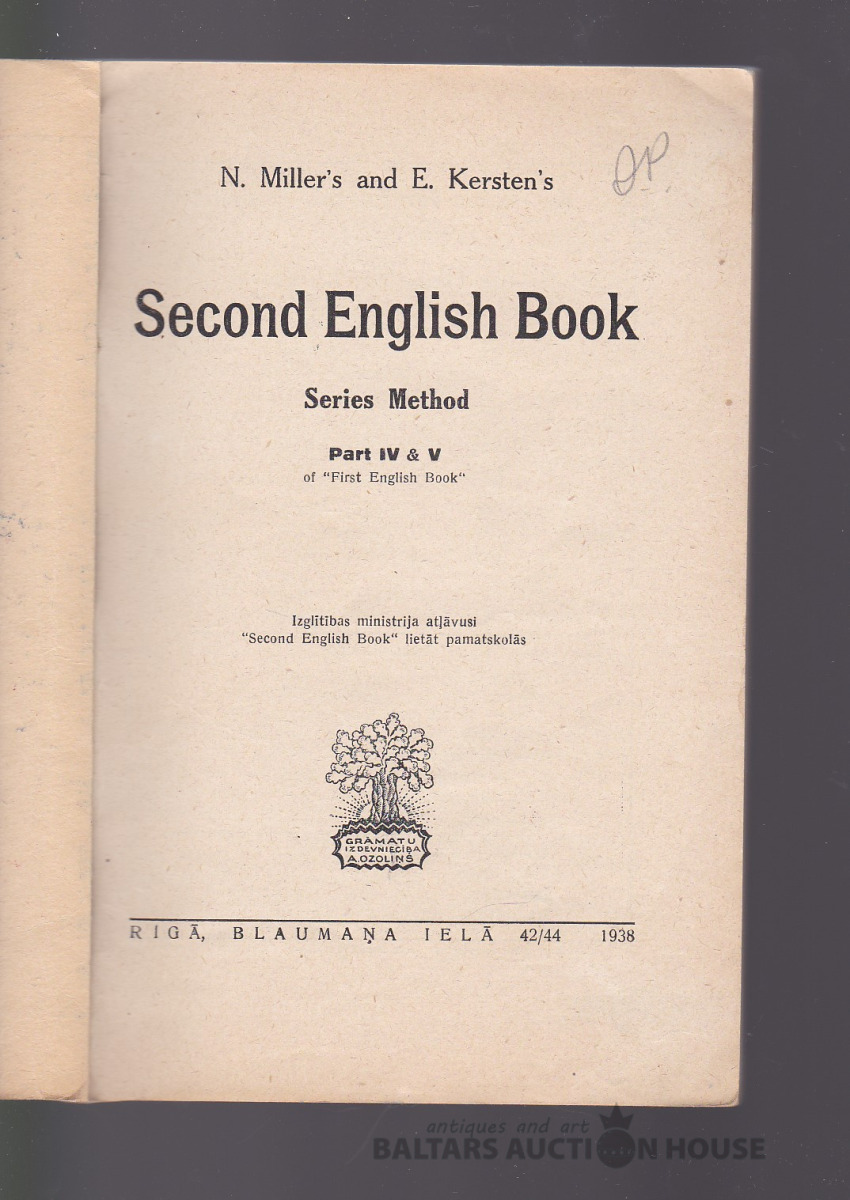 N. Miller's and E. Kersten's SECOND ENGLISH BOOK, 1938. g. Grāmatu izdevniecība A. Ozoliņš. Bagātīgi ilustrēta. Ar brīvvalsts fotogrāfijām saturā