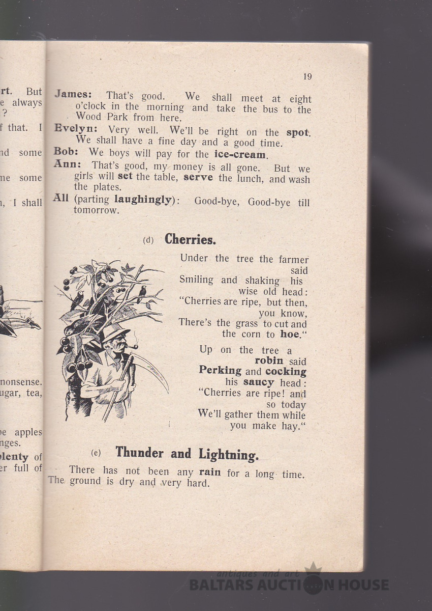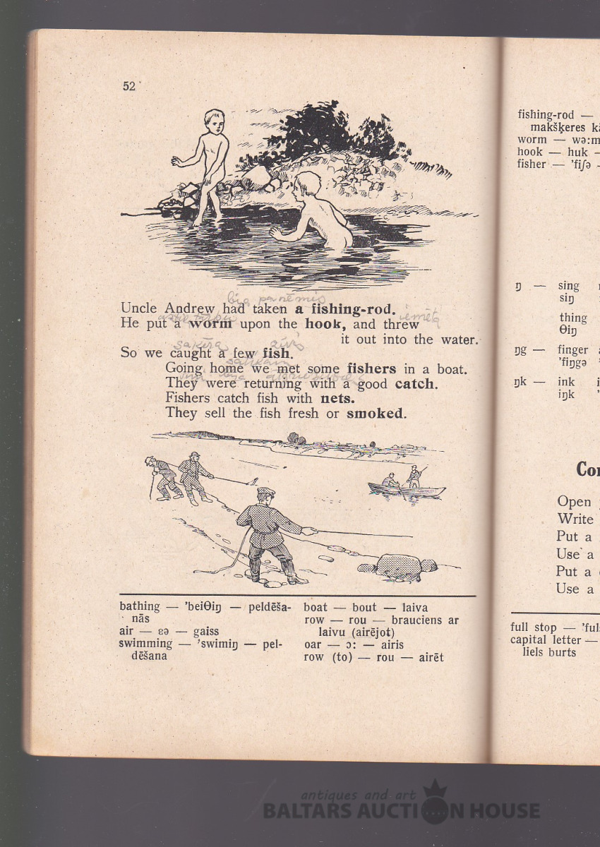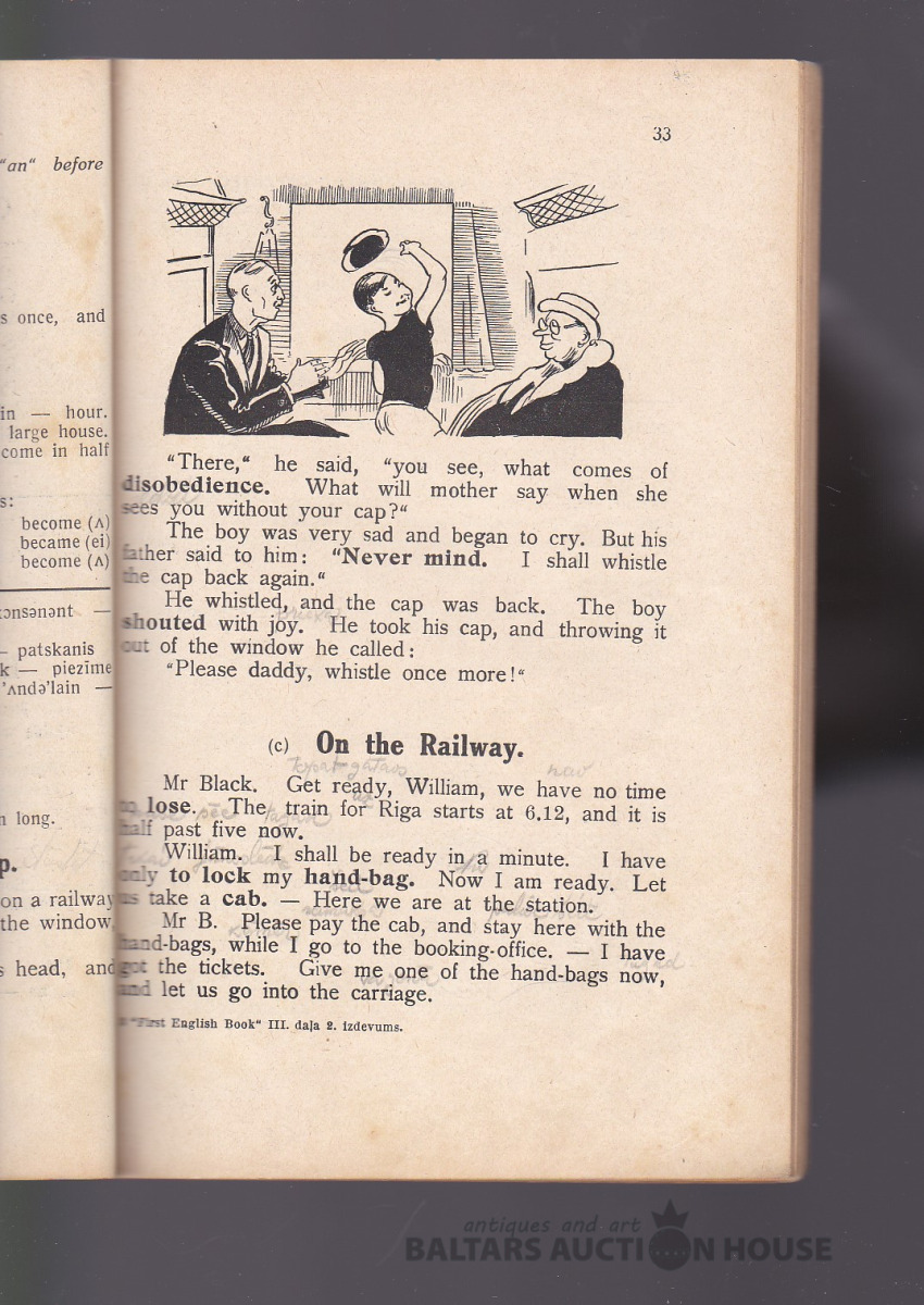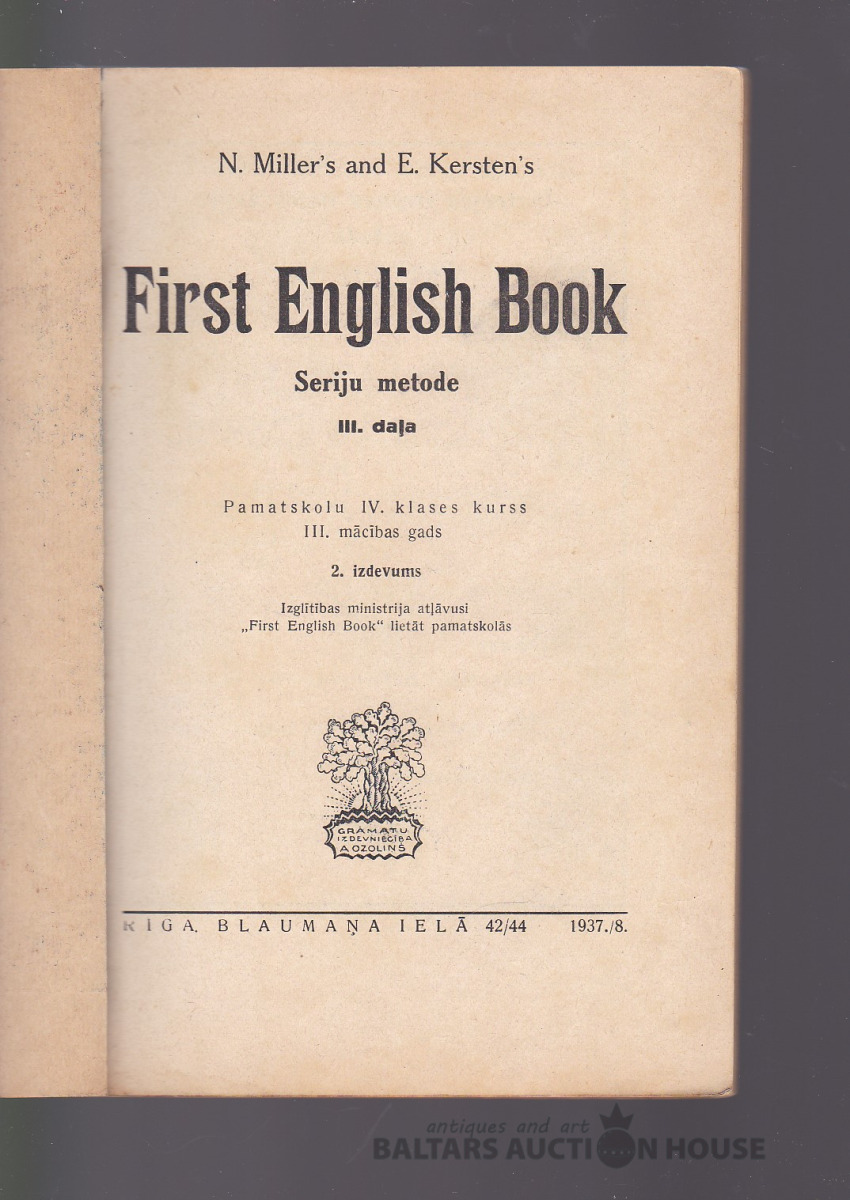 N. Miller's and E. Kersten's FIRST ENGLISH BOOK 3, 1937. g. Grāmatu izdevniecība A. Ozoliņš. Bagātīgi ilustrēta. Vāku zīm. Raimonds Šiško