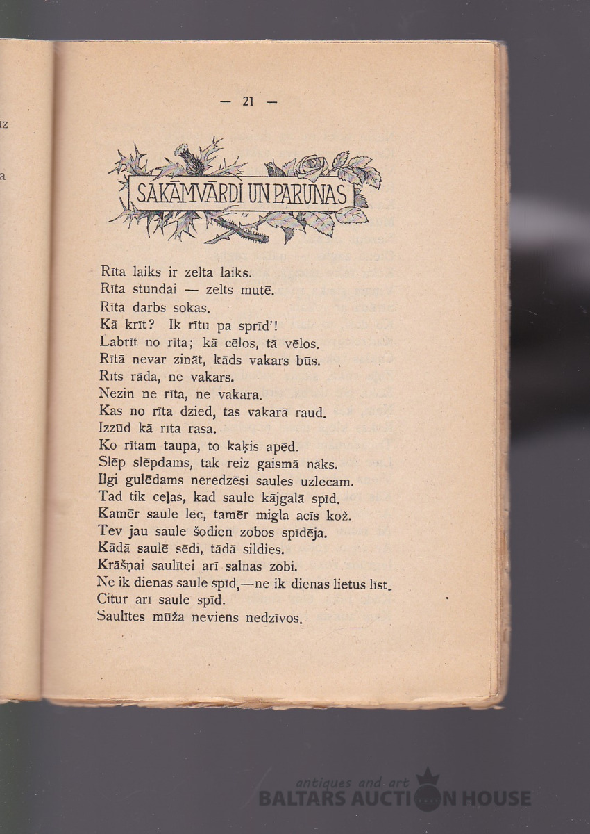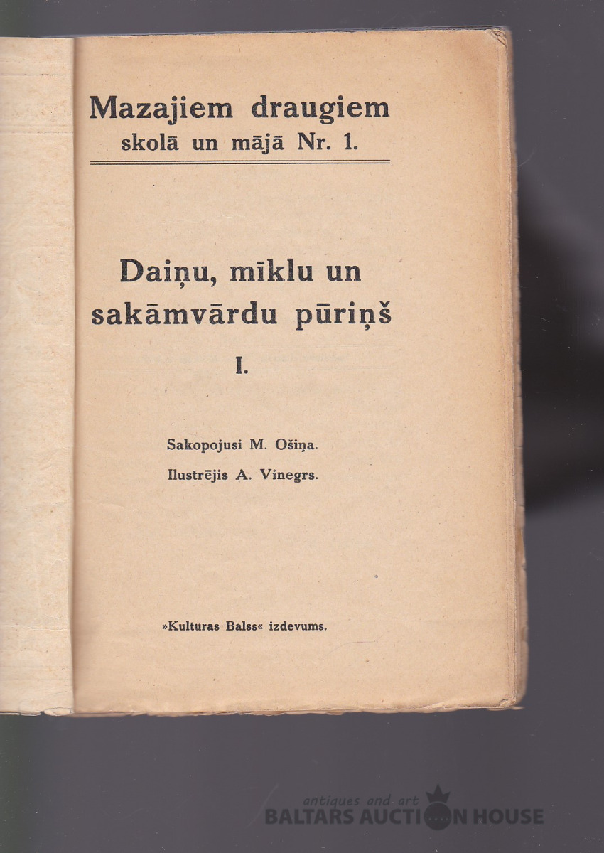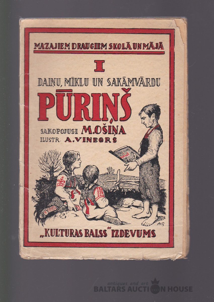 DAIŅU, MĪKLU un SAKĀMVĀRDU PŪRIŅŠ, 1925. g. Ilustrators A. Vinegrs. Kultūras balss izdevums. Daudzām ilustrācijām. 84 lpp.
