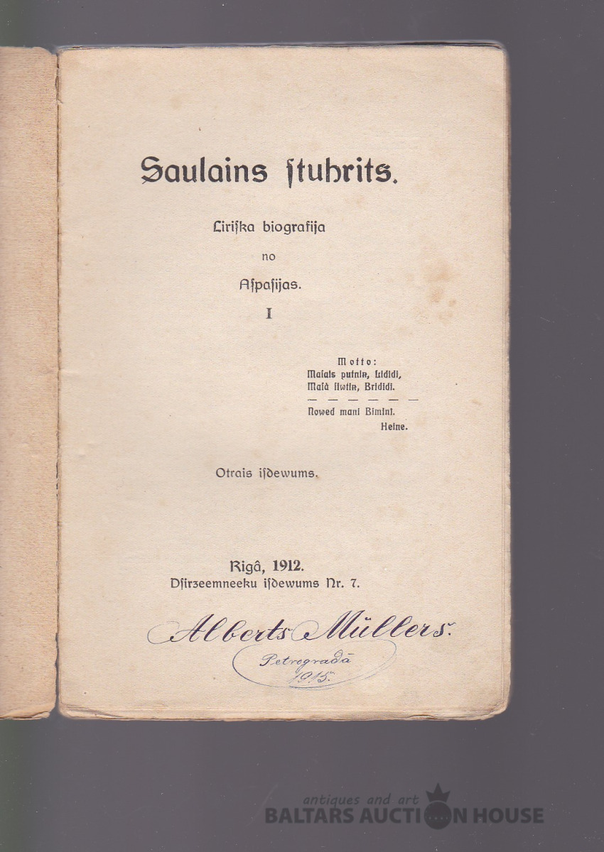 Aspazija – Saulains stūrītis, 1912. g. Dzirciemnieku izdevums. Zīmētās vinjetes staurā