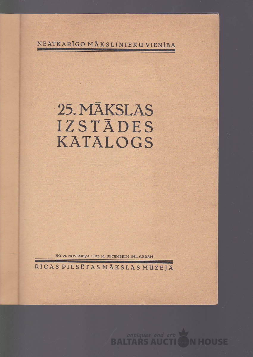 Neatkarīgo mākslinieku vienība. Katalogs 25. mākslas izstādei. 1931. g. Vāku zīm. J. Ansons. Ar izstādīto darbu sarakstu. Kataloga noslēdzošajā daļā reprodukciju pielikums (skatīt bildēs)