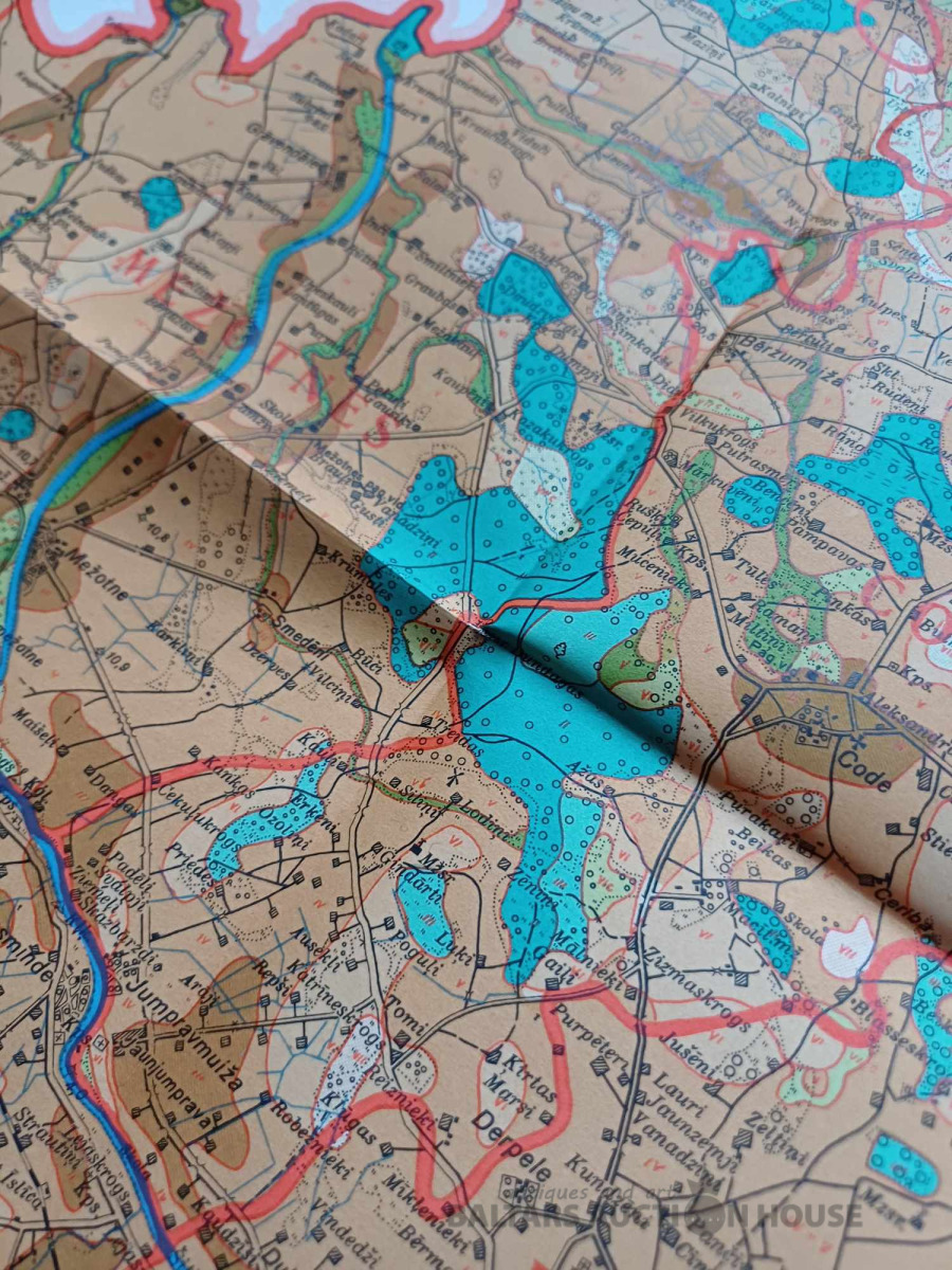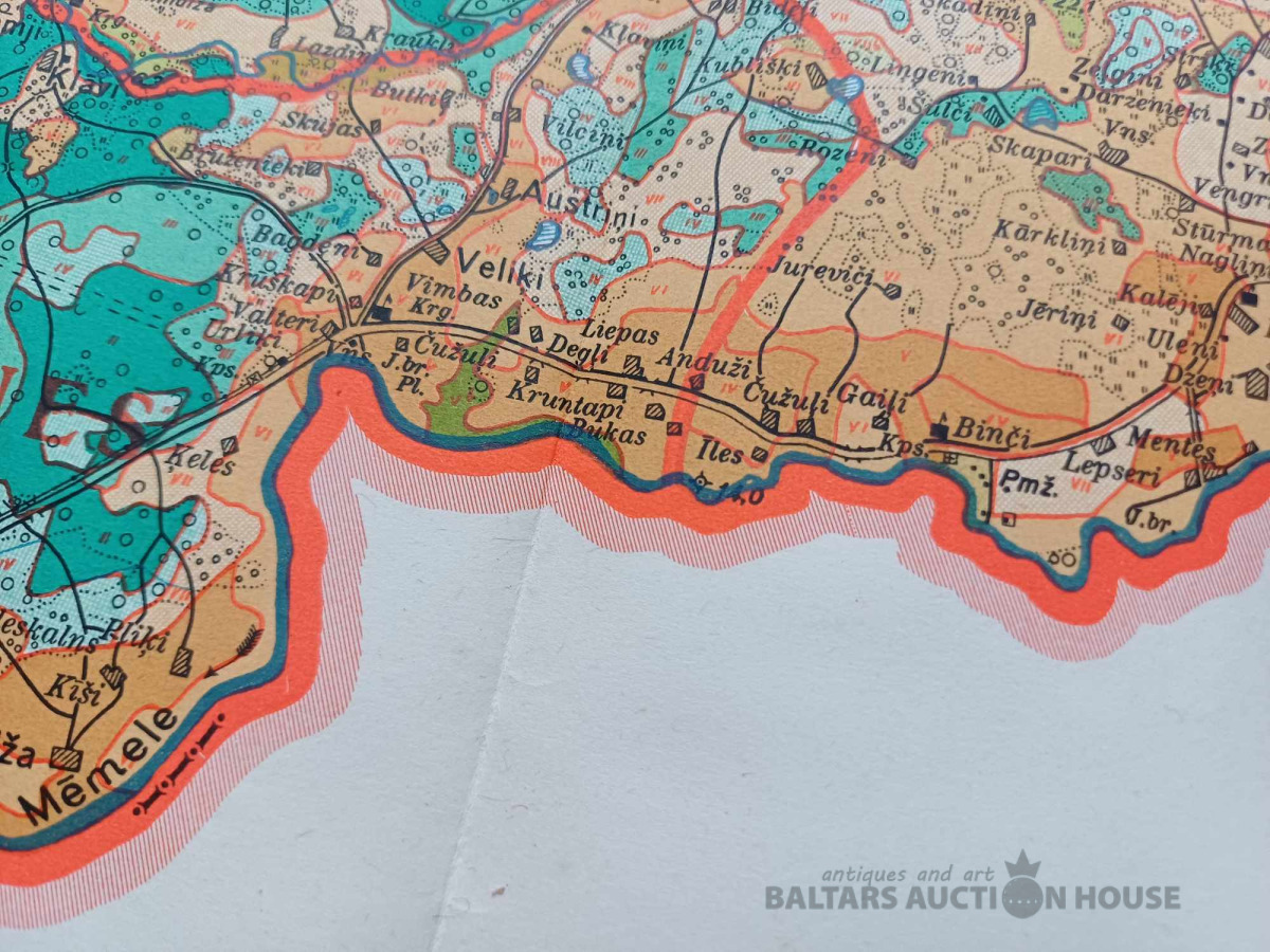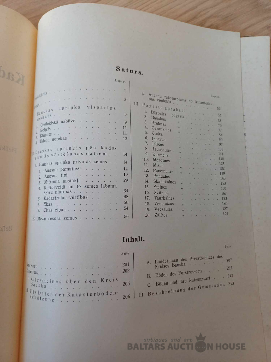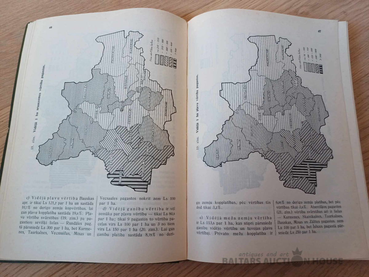Kadastrālās vērtēšanas dati Bauskas apriņķī (1939). Grāmata ar 3 pielikuma kartēm. Lielās kartes izmērs 980x820. Karte labā stāvoklī. Stāvokli un ilustratīvu priekšstatu skatīt attēlos. Karte iespiesta Valstspapīru spiestuvē.
