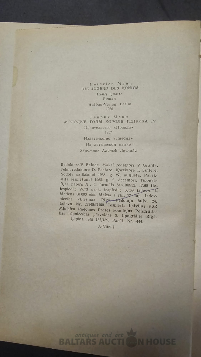 Grāmata, Heinrihs Manns: Karaļa ANRĪ IV jaunība, 1969, Izd. Liesma, 550lpp, Ļoti labs stāvoklis!