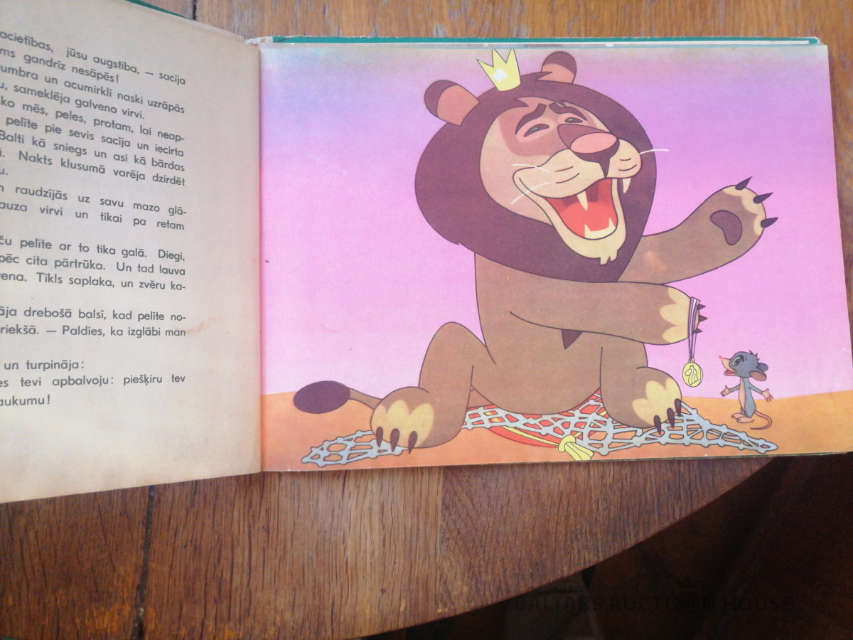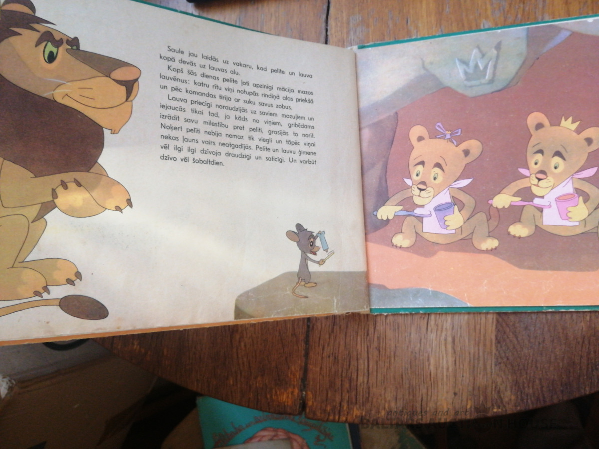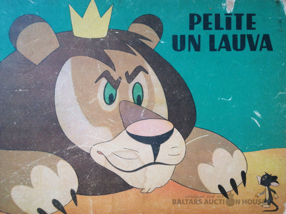 ‘Pelīte un lauva”, LVI, 1964., lielām krāsainam bildēm ilustrēta grāmata pirmsskolas vecuma bērniem