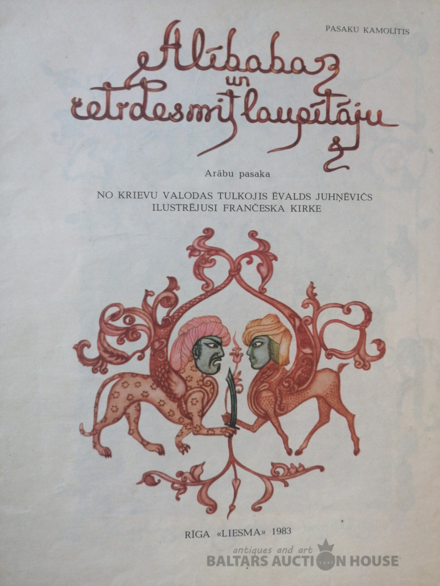 “Alibaba un četrdesmit laupītāju”, arābu pasaka, Liesma, 1983., Frančeskas Kirkes ilustrācijas, grezns izdevums