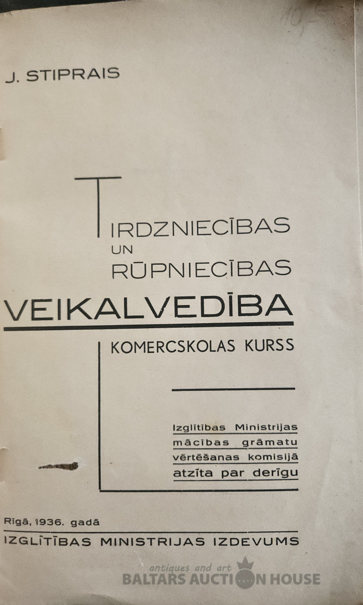 J.Stiprais "Tirdzniecības un rūpniecības veikalvedība. Komercskolas kurss.