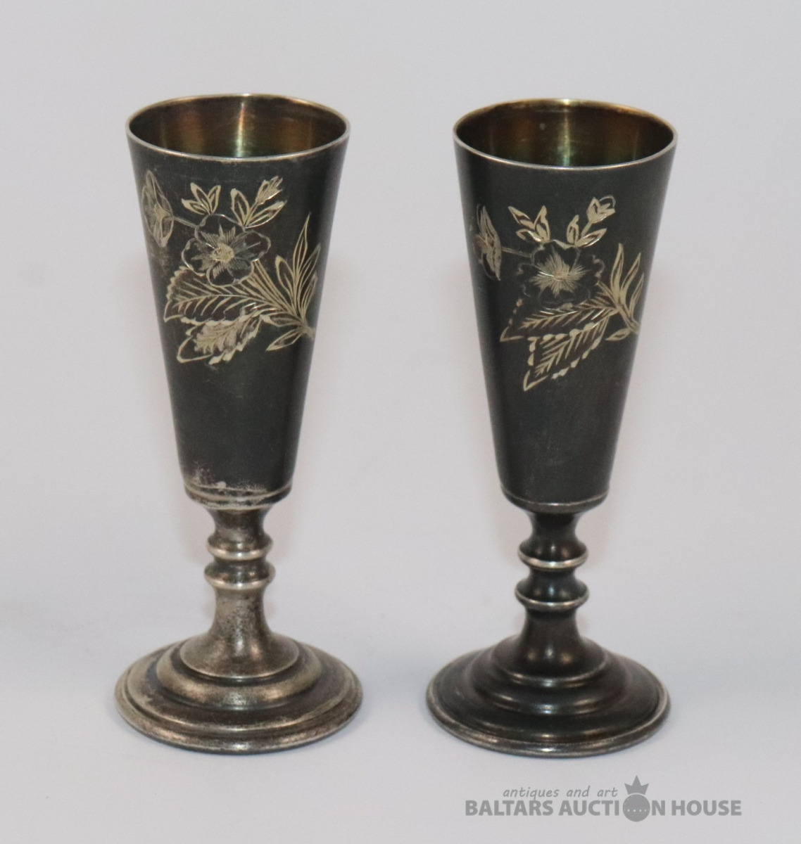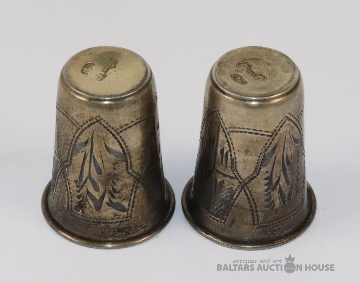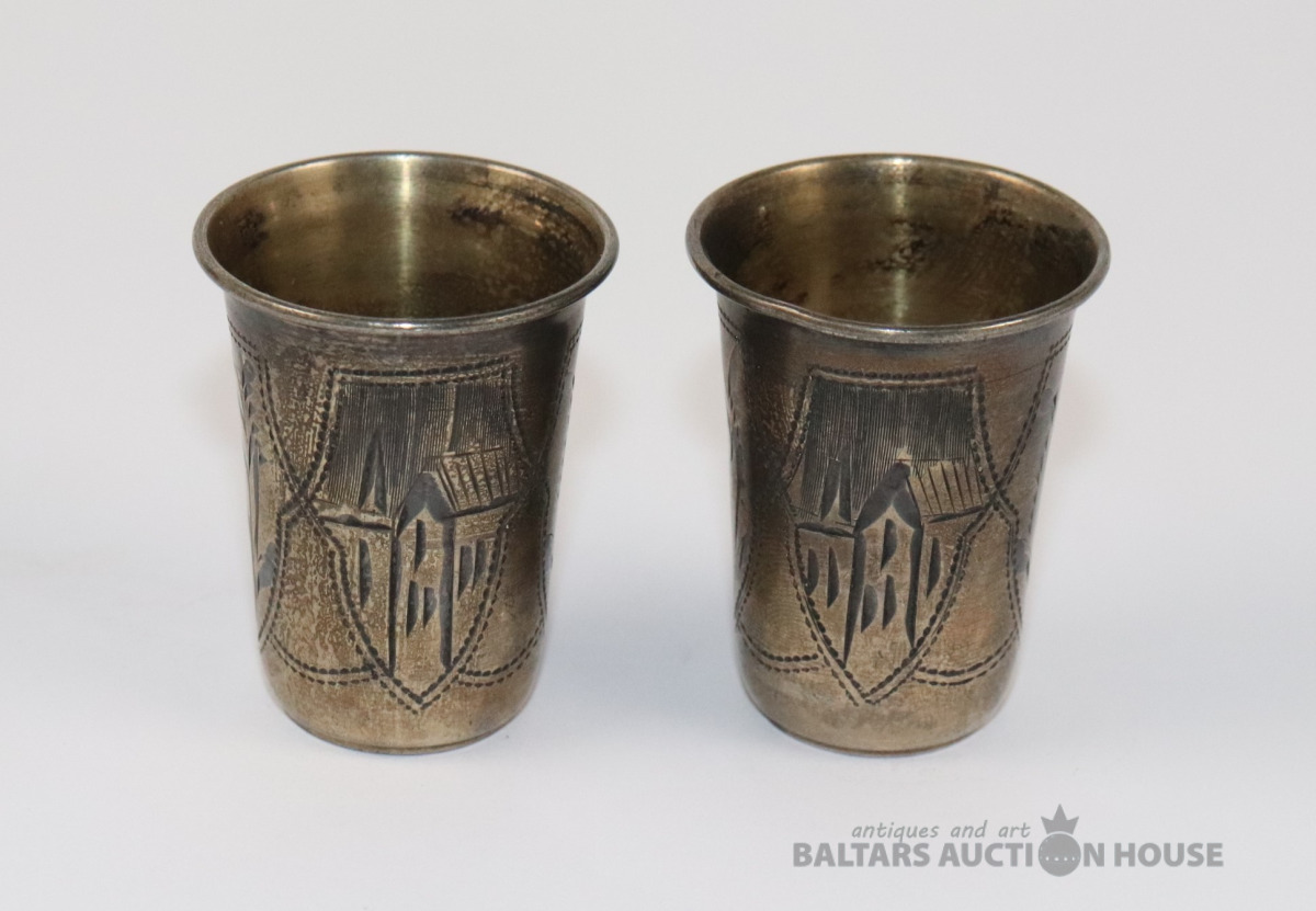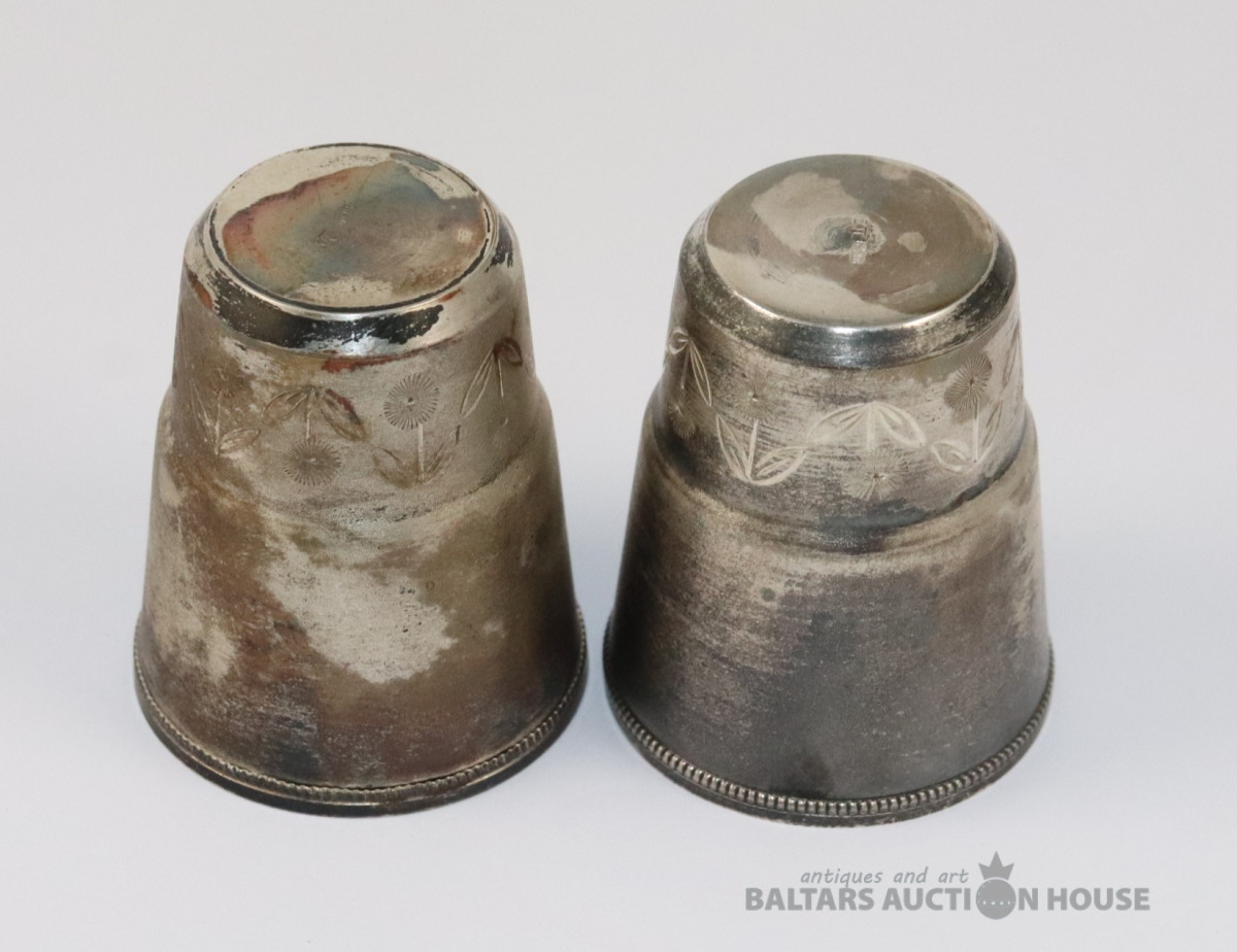 Glāzes 2 gab. Sudrabs 875. Svars 63,08 g. h=7,3 cm. d=3,8 cm