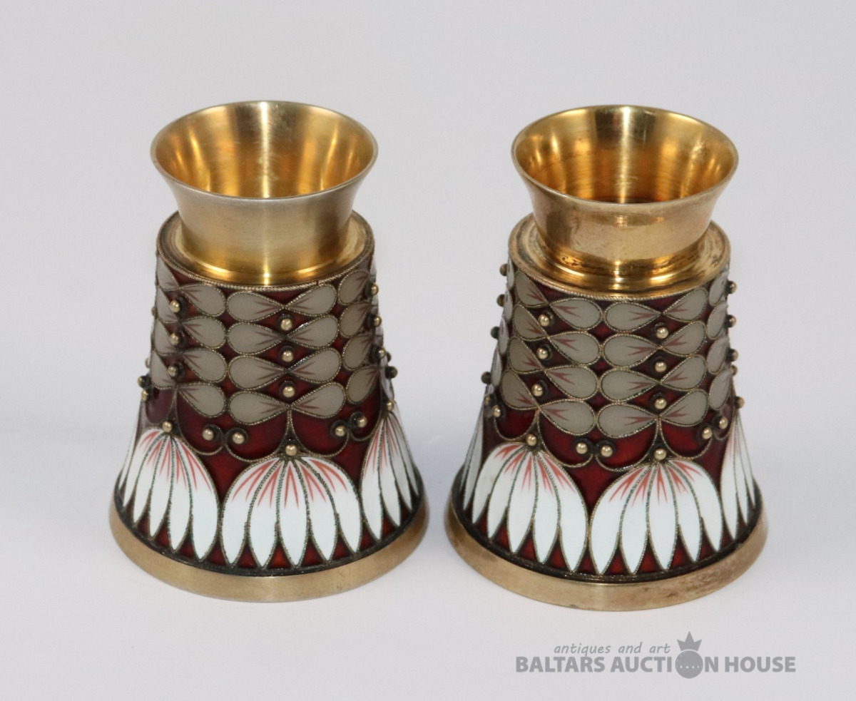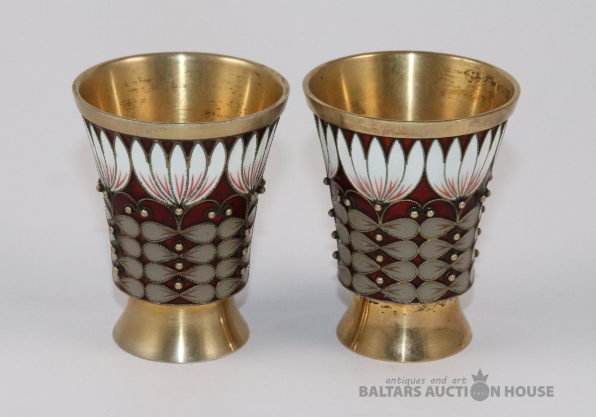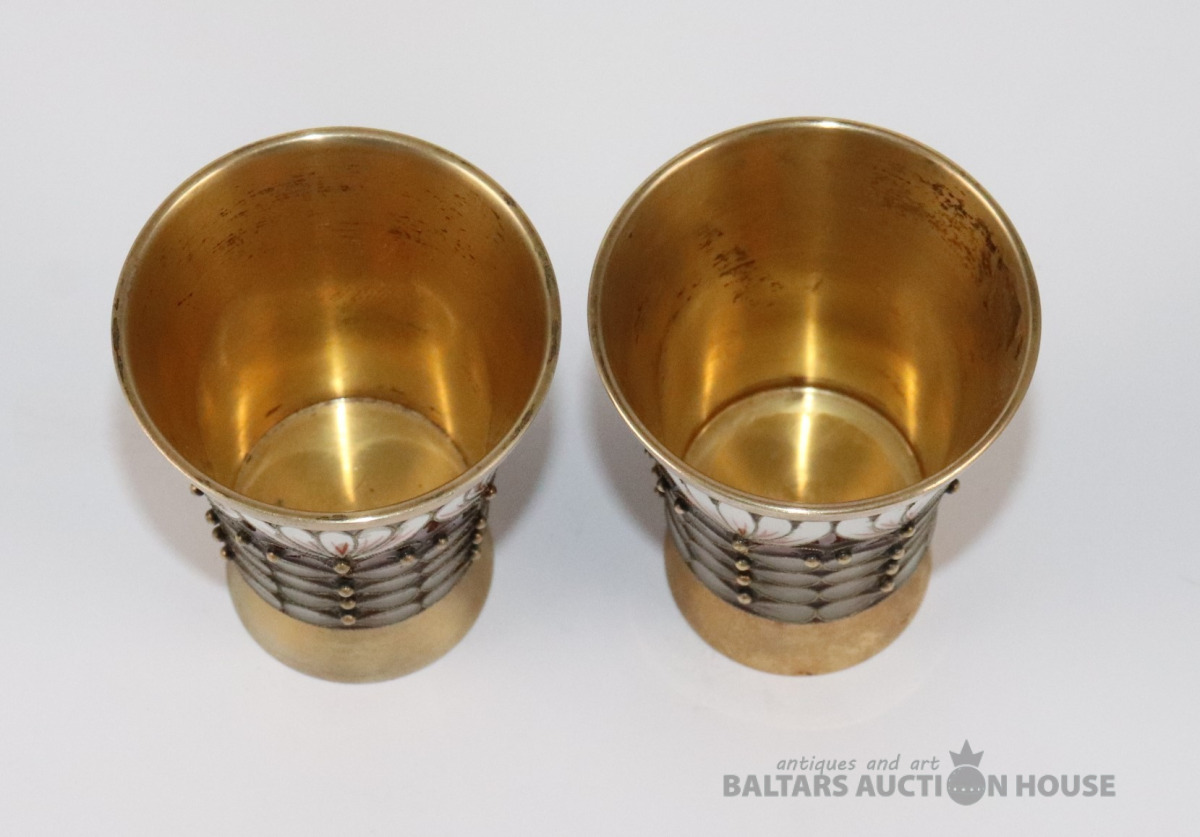 Glāzes 2 gab. Sudrabs 925, emalja. Svars 169,93 g. h=6,5 cm. d=5 cm