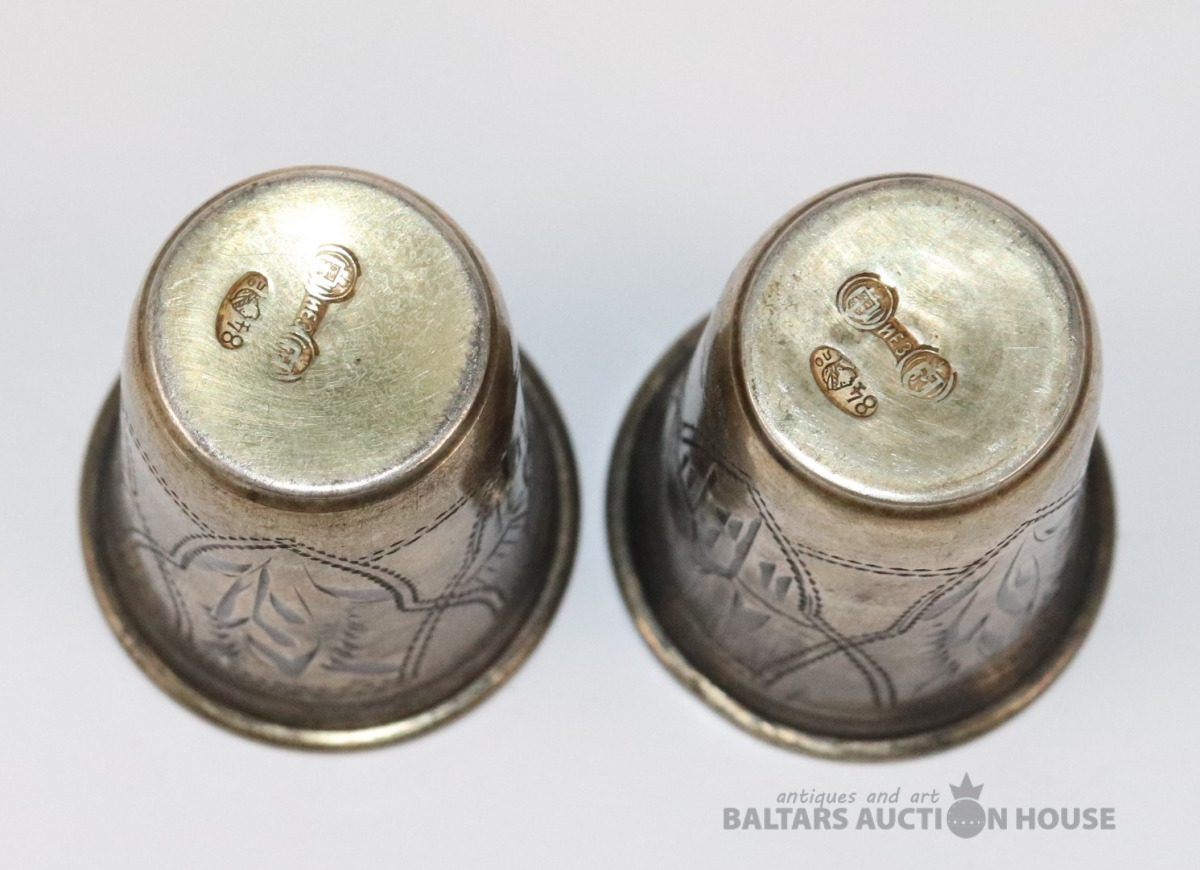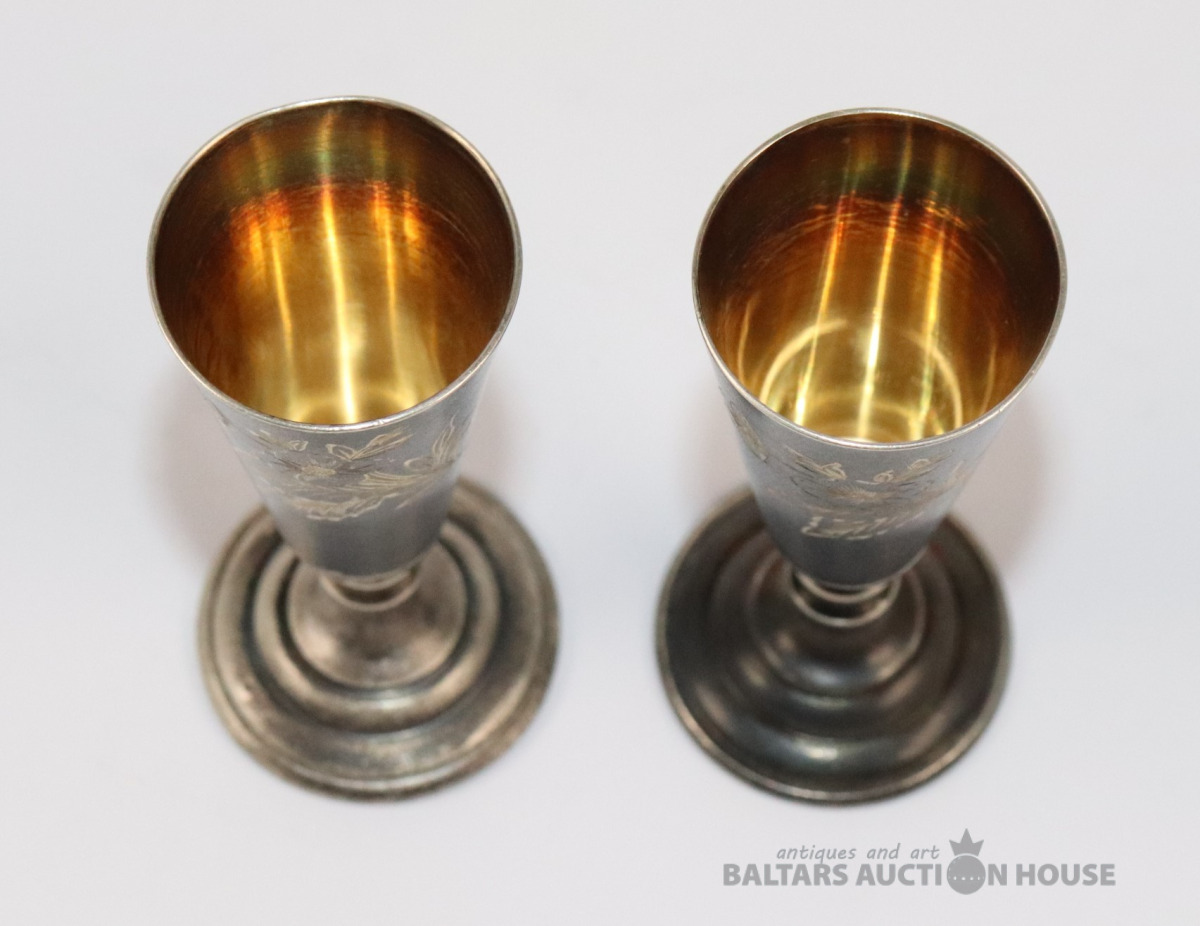 Glāzes 2 gab. Sudrabs 916. Svars 66,75 g. h=4,8 cm. d=4 cm