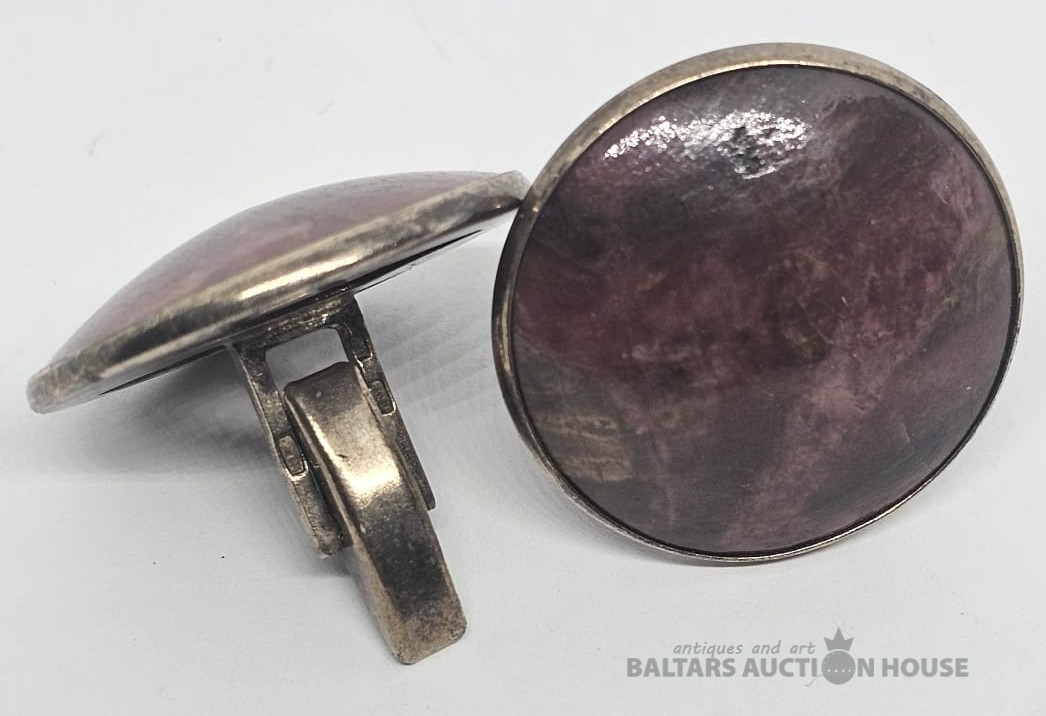 Sudraba aproču pogas, lielas (.925), Dabīgs akmens