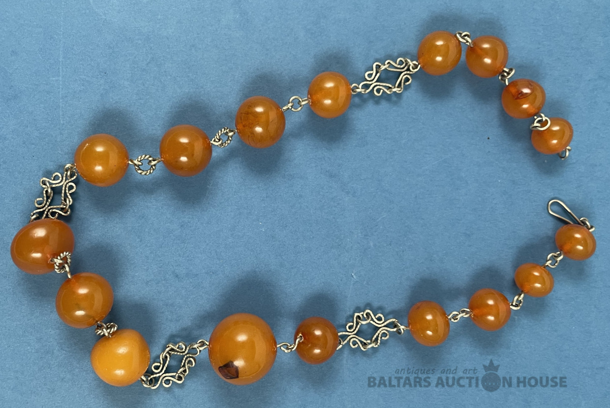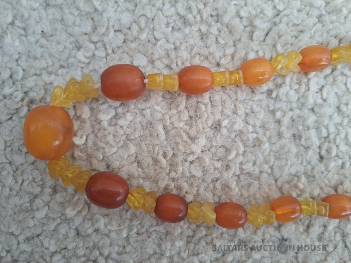Krelles, dzintars, metāls, svars=24,11 grami, l=39 cm